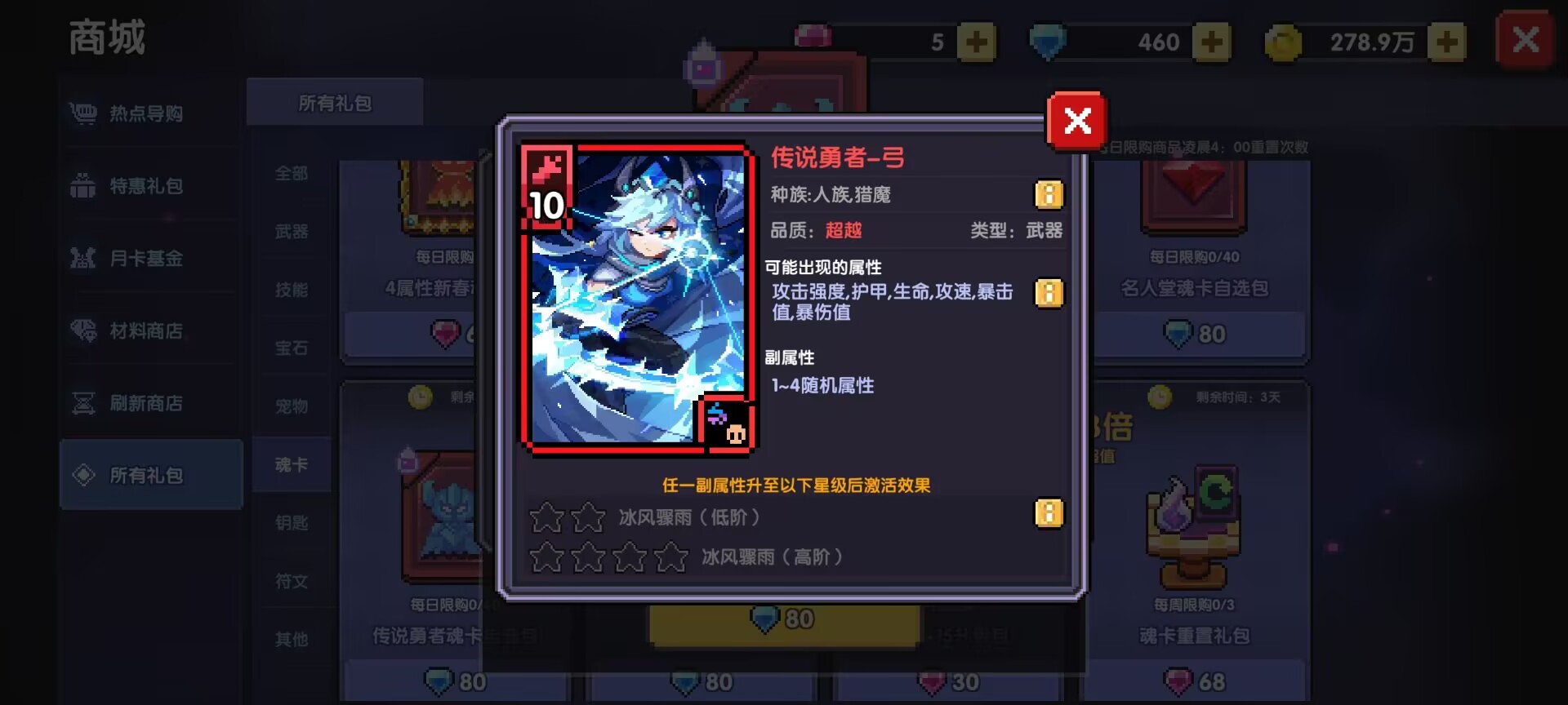 五:刷新商店里面的魂卡商店(建议大家看到了深渊猎人-龙息、堕落天使-昔拉、堕落天使-切茜娅、堕落天使-路西法、偶像克罗塞尔都可以买一下)