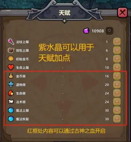 目前普遍房间分别为:法术房、金币房、遗物房、血上限房、加工房、商店。