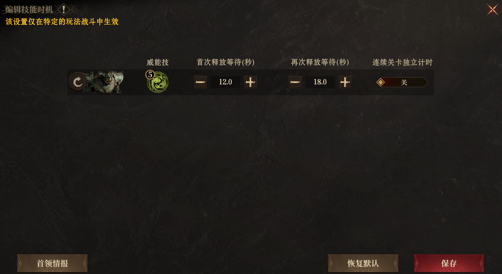 再次释放时间调整为18秒即可覆盖到BOSS的后续技能循环