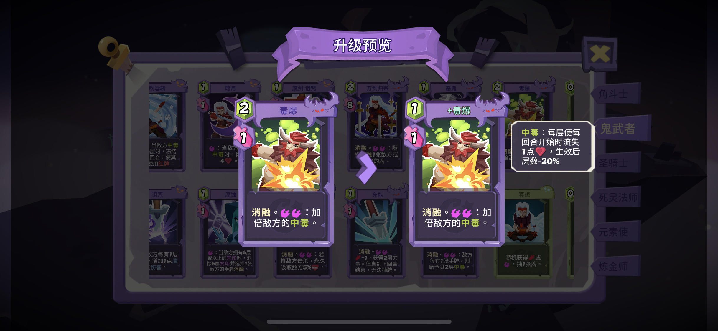 力量叠毒流——区别于力量连斩流的是绿牌不变。但叠毒(输出)牌为