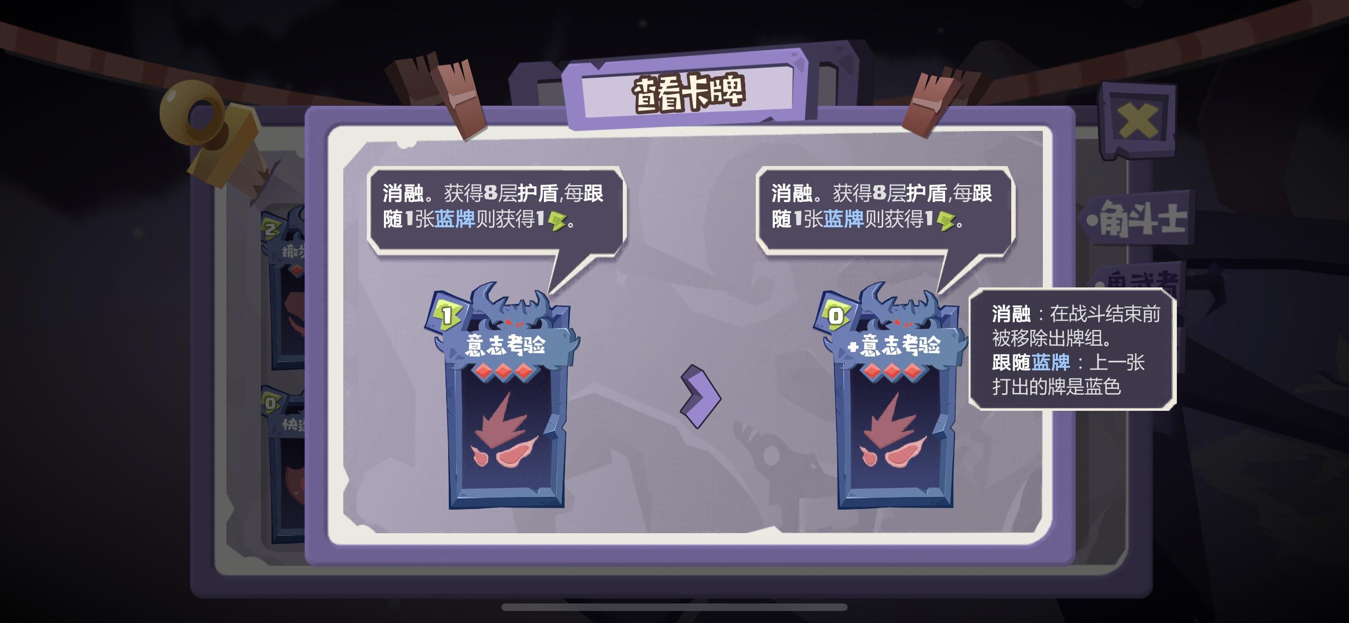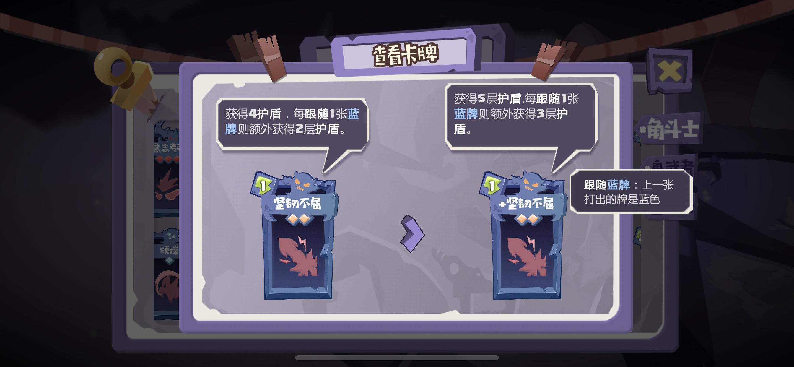 还有一张冲撞攻击,作为一张过boss的功能牌单独出来讲,一般第一关很容易遇到叫什么将军的,回合结束根据自己的盾造成伤害,用这张卡破盾会好打一点。