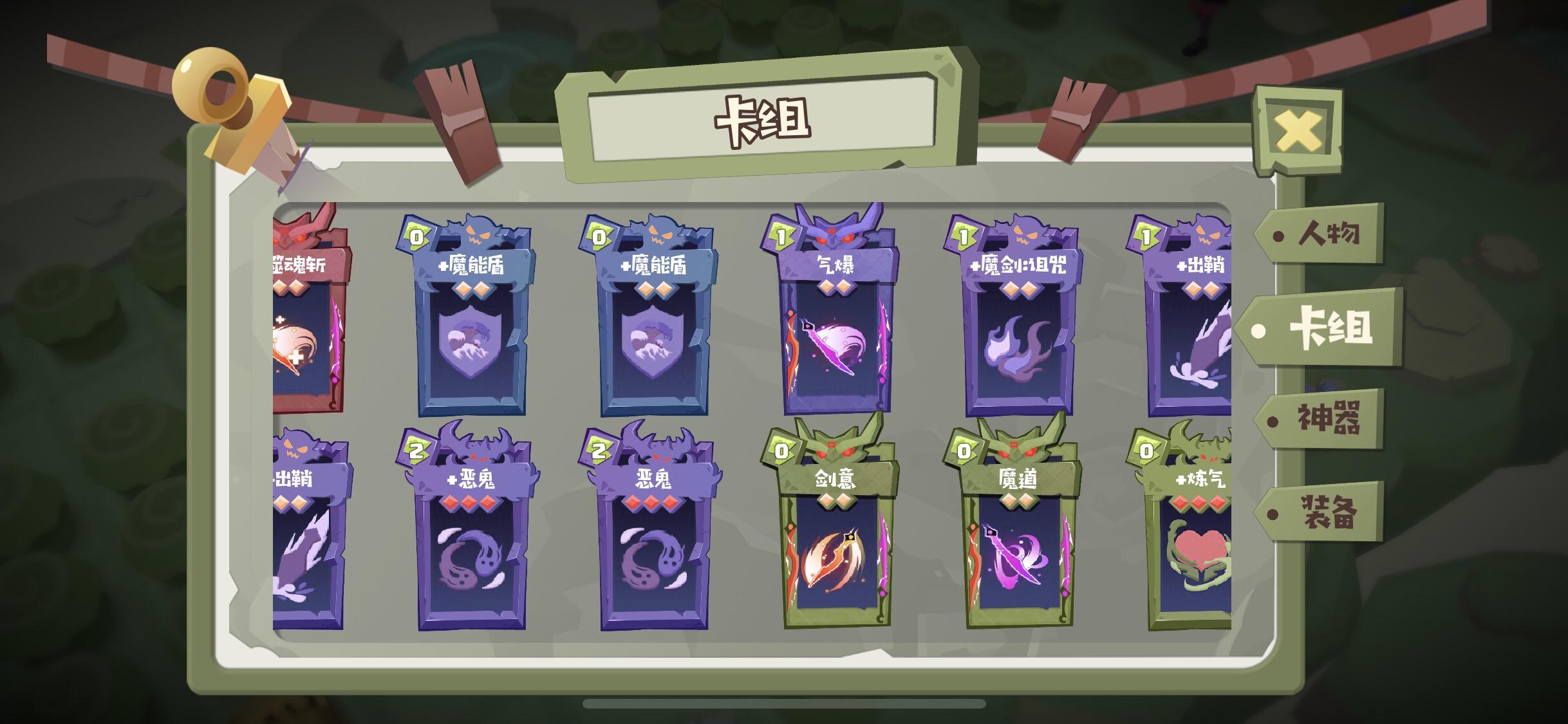 推荐带至少一张强化的刀背斬,可以补充魔气(在没有炼气的情况下的兼顾过牌和补气的最佳选择之一)而且检索噬魂斬,可以一直用到最后,炼气用于调整气的属性,因为会比较缺魔气,而且能兼顾过牌