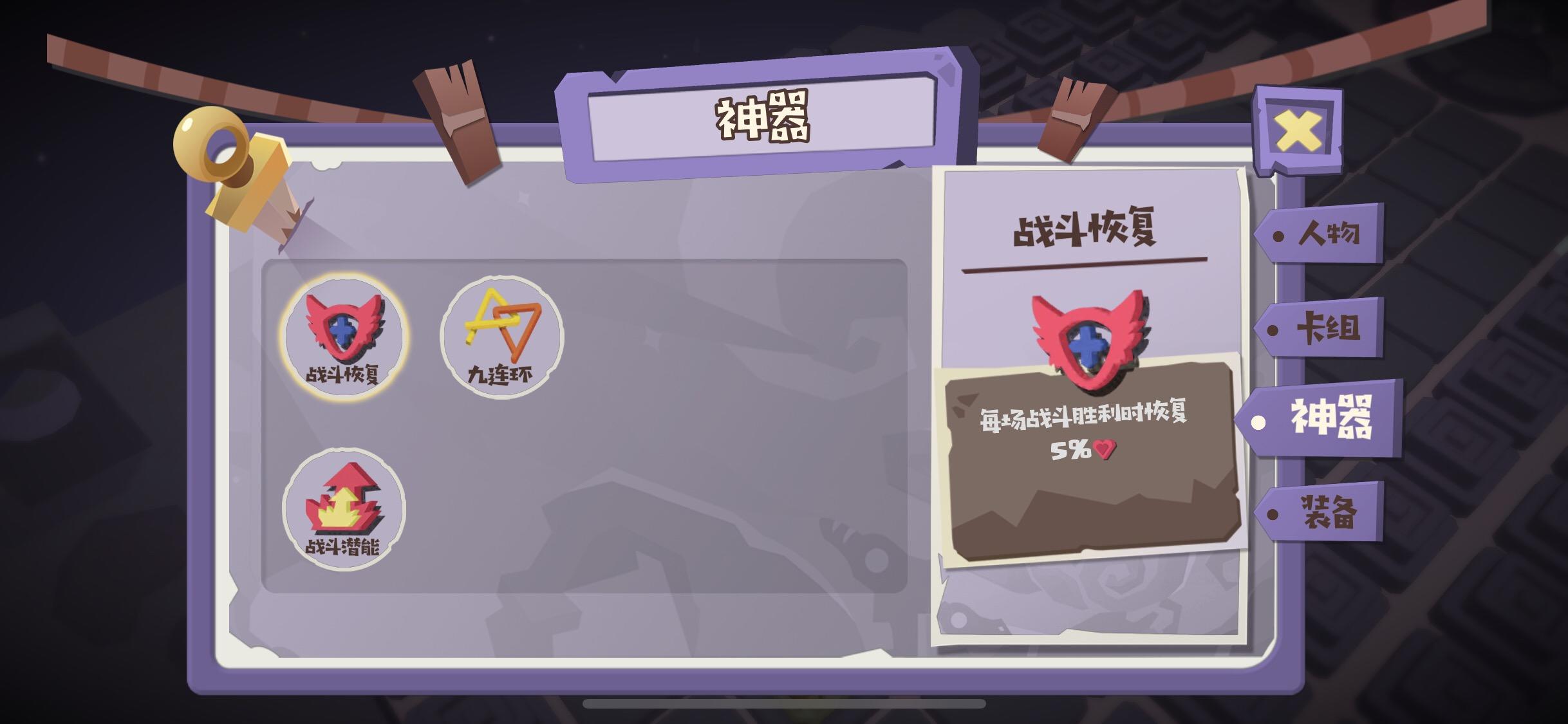 新手使用本流派的话推荐在商店刷出神器为:辣椒,九连环,其中辣椒+1行动力,而每回合损失1生命的负面效果可以不计,九连环是为了更多使用嗜血技能或魂技能。小笼包也是不错的,因为血牛的血量经常低于50%。