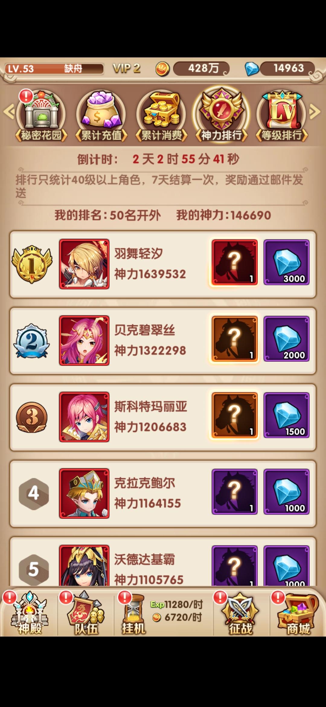 9.神力排行:由于我大号的这两个活动结束了,所以开小号截了下图,这两个是开区活动,想当区霸的话尽量抢一下。