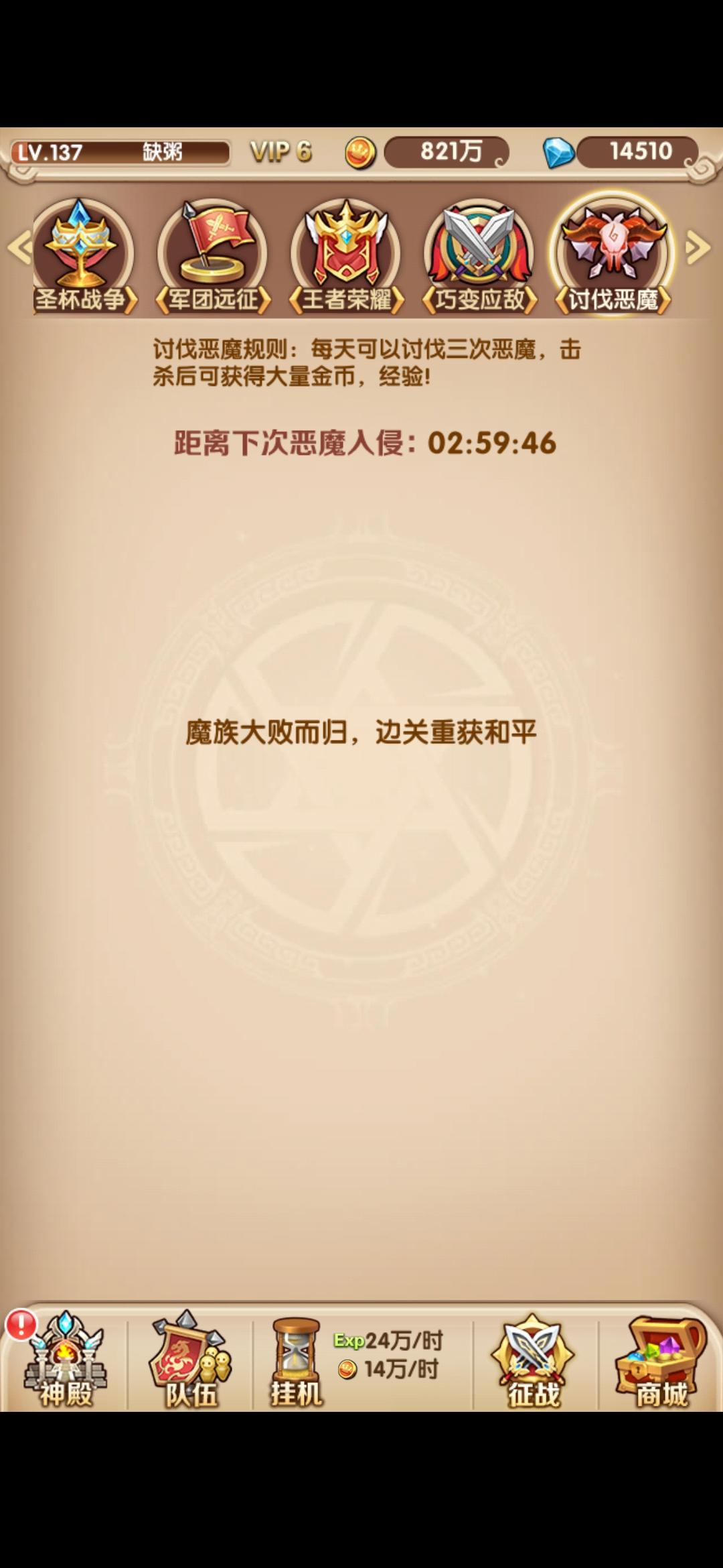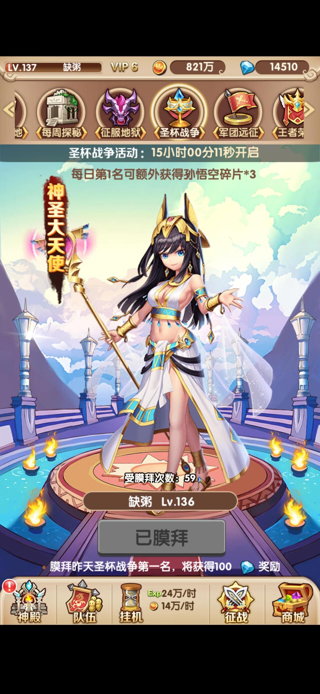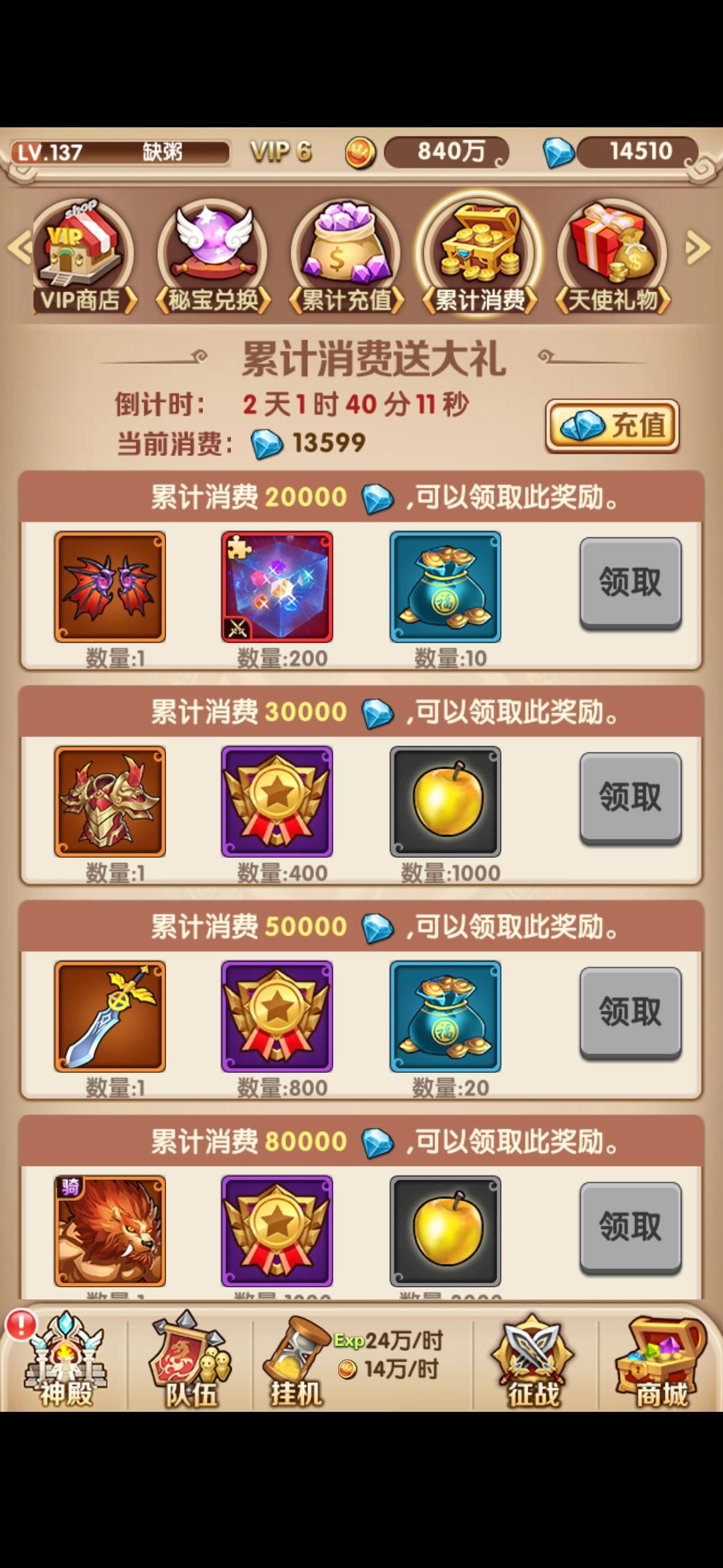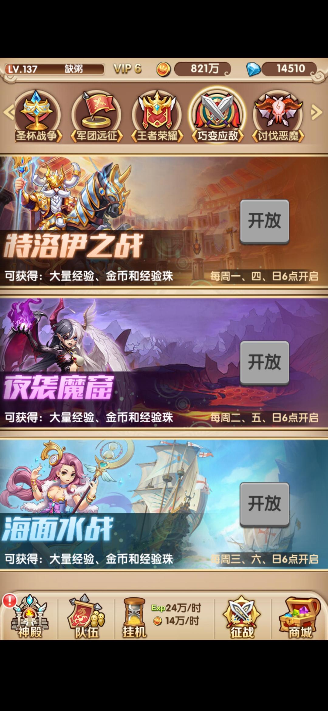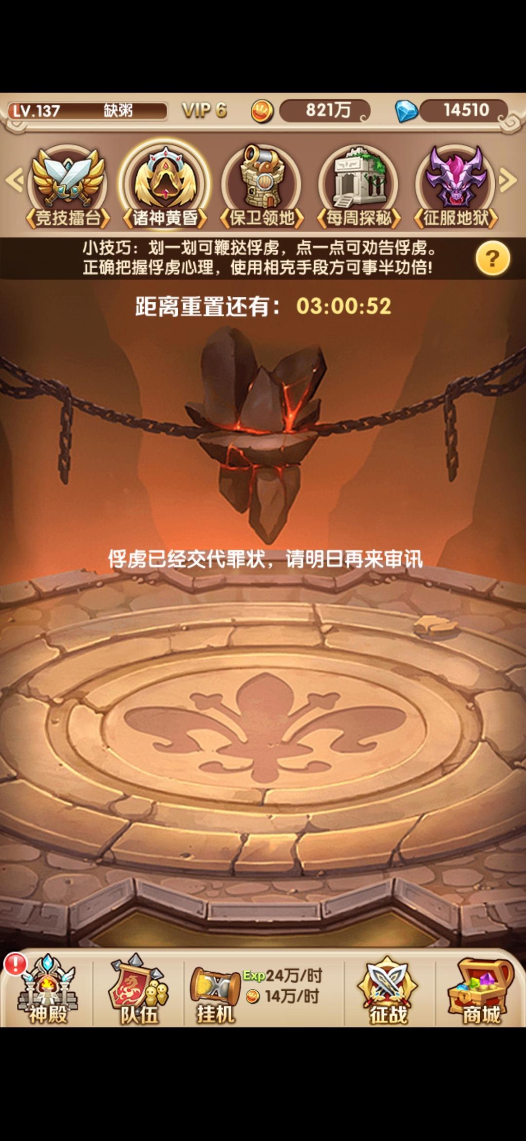 15.诸神黄昏:送金币和经验,每天加速还有祈祷用完再来点(等级越高给的金币和经验越多)。
