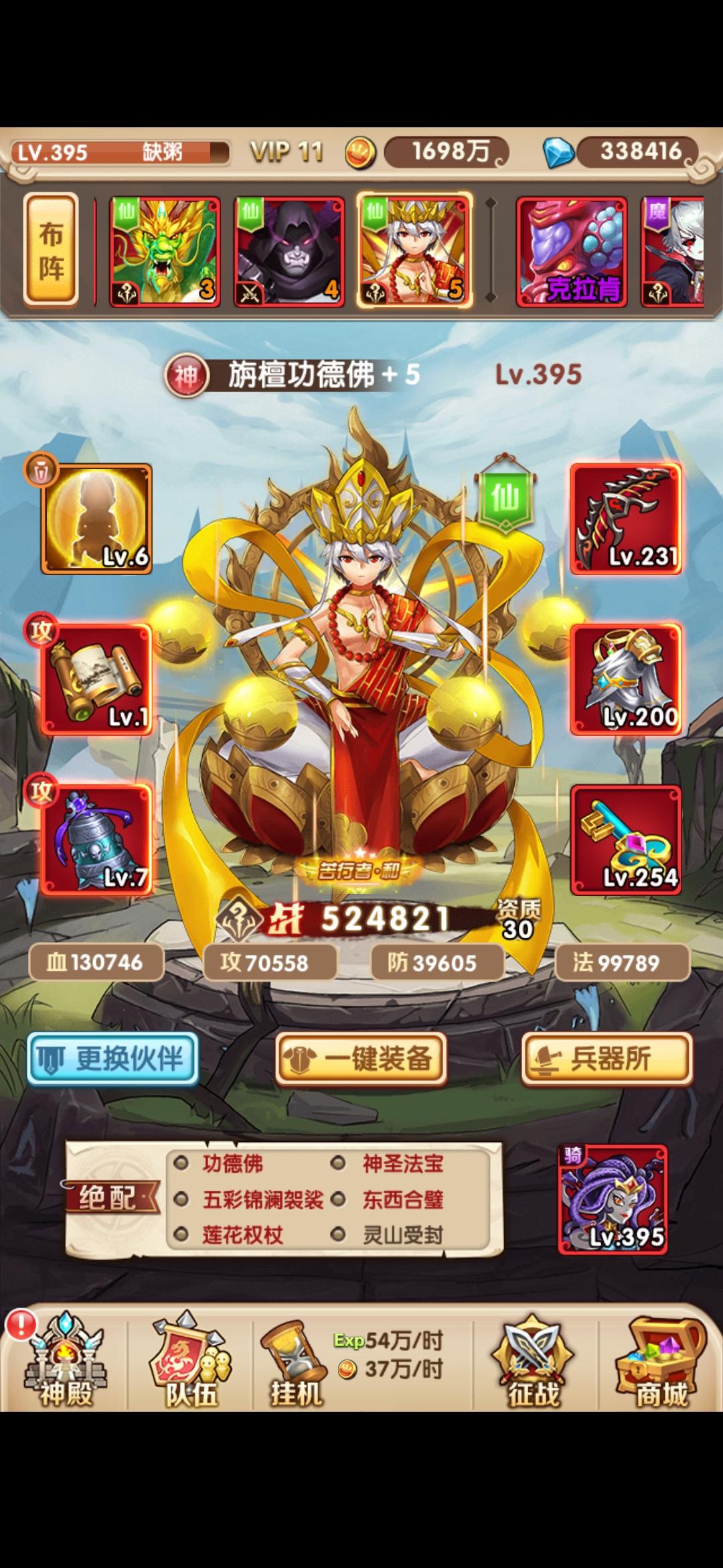 其他队伍:这里特别说明一下功德佛(三藏进化到金蝉子,金蝉子融合获得),因为这张卡是前期平民在保护神出之前唯一的一个奶妈,可以用到很久。