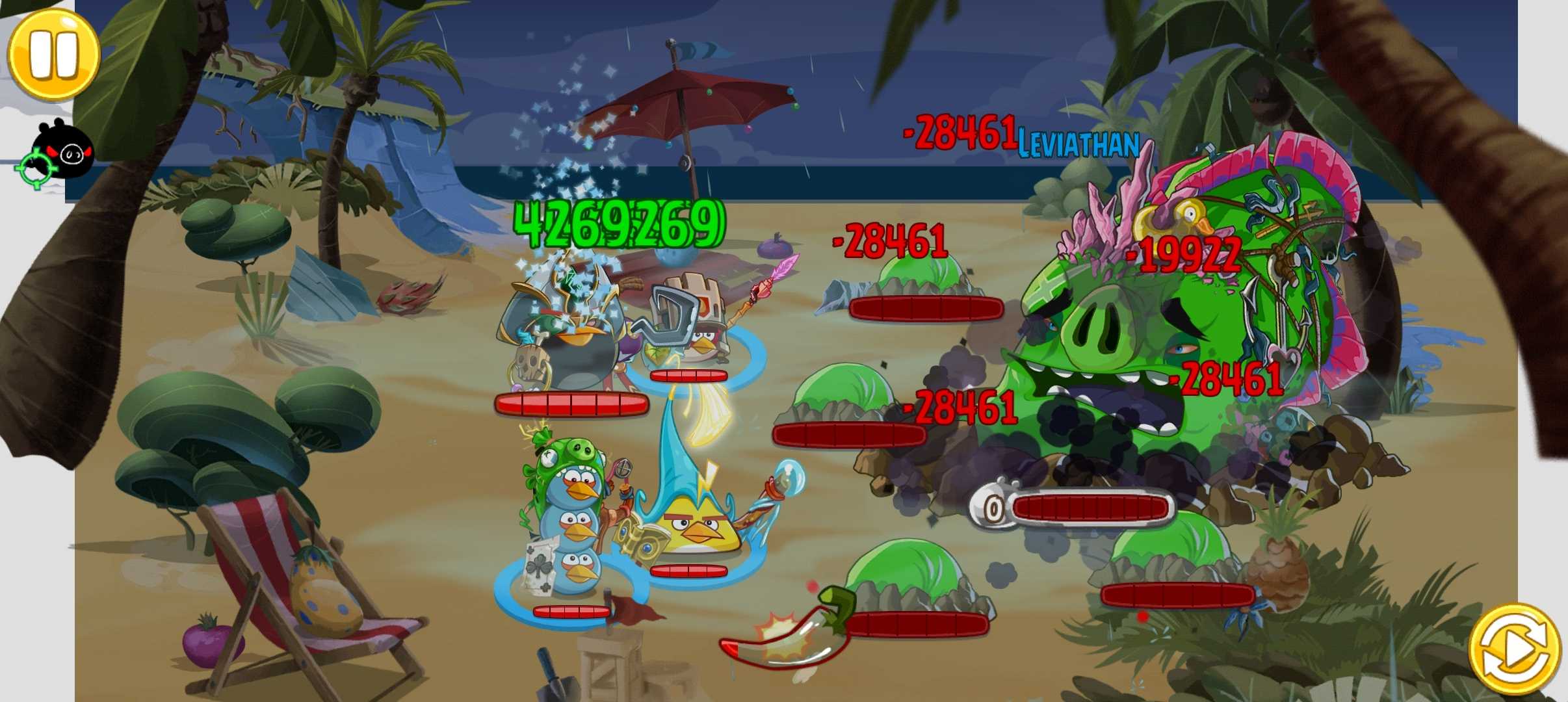 这个版本就是纯起到一个解压作用,小鸟大加强猪猪什么都没改,游戏包含內购,开局送你25000金币,可玩活动和竞技场,活动体力无限,并且炸弹黑新增一顶新帽子(普攻是混沌之触)并且当天金猪打完会立马再刷一个金猪,并且地图上那些获取材料的石头什么的刷新一下就会重置,对所有鸟的大招都进行了魔改,适合给被其他改版玩破防的人玩的