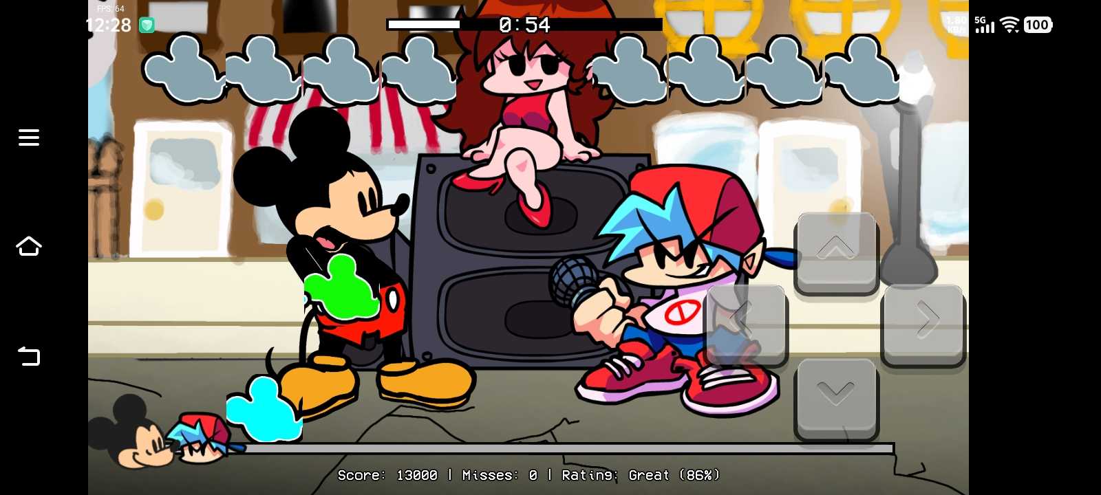 我自己制作的花了我一个月时间终于制作好了将所有内容全部大改米老鼠换成了彩色bf和gf同理背景也是不过三四阶段背景没改不过以后会弄,下次更新等三个月