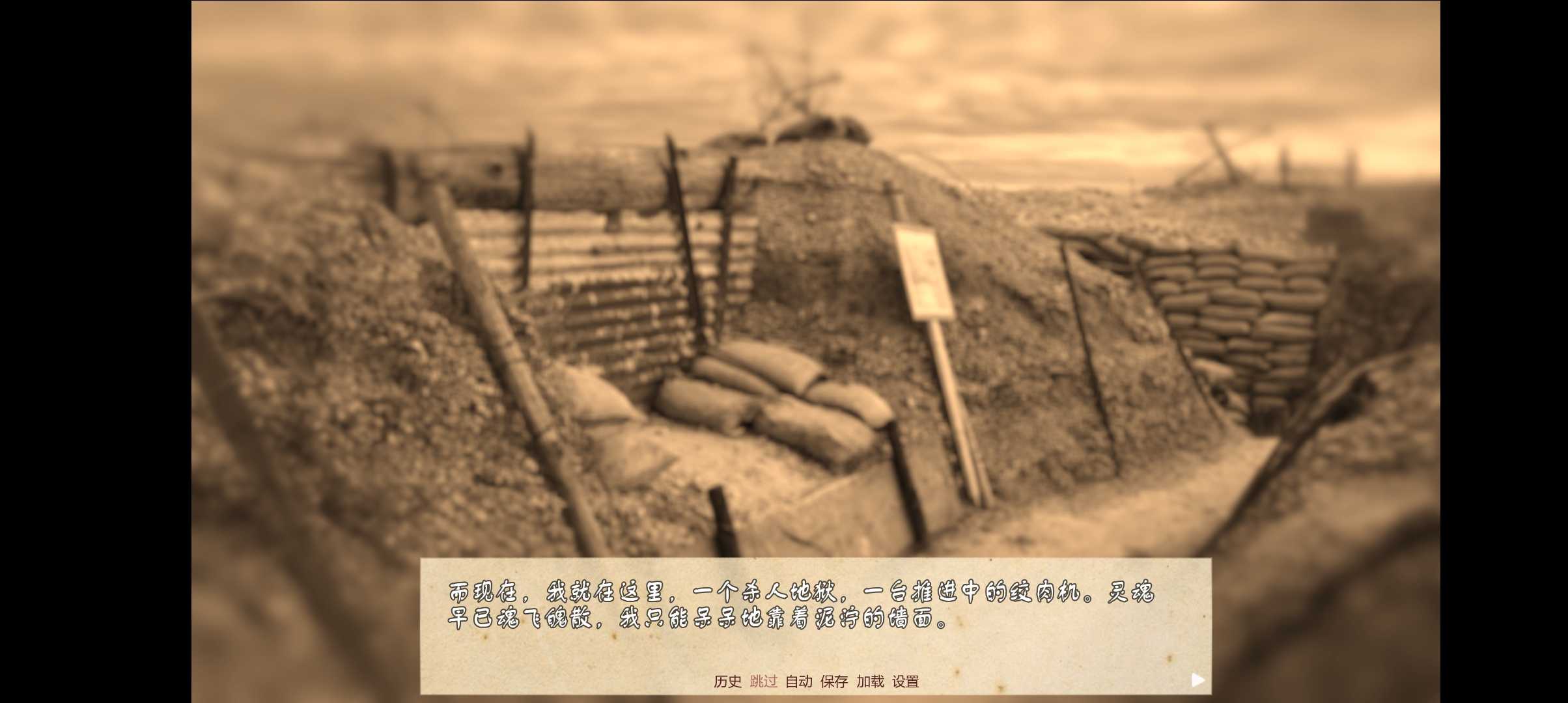 166.堑壕战(Trench Warfare) 篇幅:超短篇 类型:抽象 角色向:? 时长:10分钟 作者:Flasium,Various Artists 汉化:GOLDkey 移植:GOLDkey 简介:你正在一战的堑壕里,这时传来了哨声和炮火声,敌人来了…… PS:本模组有bug无法存档,不过剧情很短不用存。