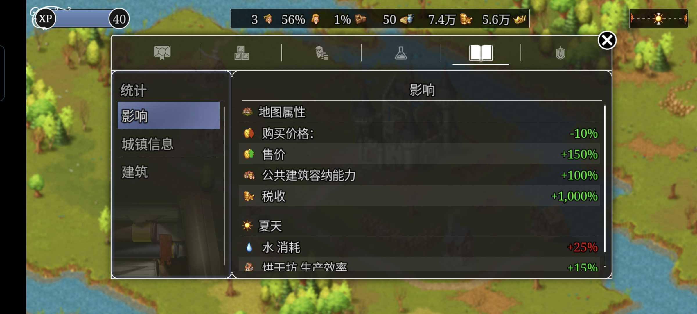 满级+研究+少量金币+少量声望 提高市场买卖上限+买卖价格差 提高税收增益 提高仓库上限 提高公共建筑容量