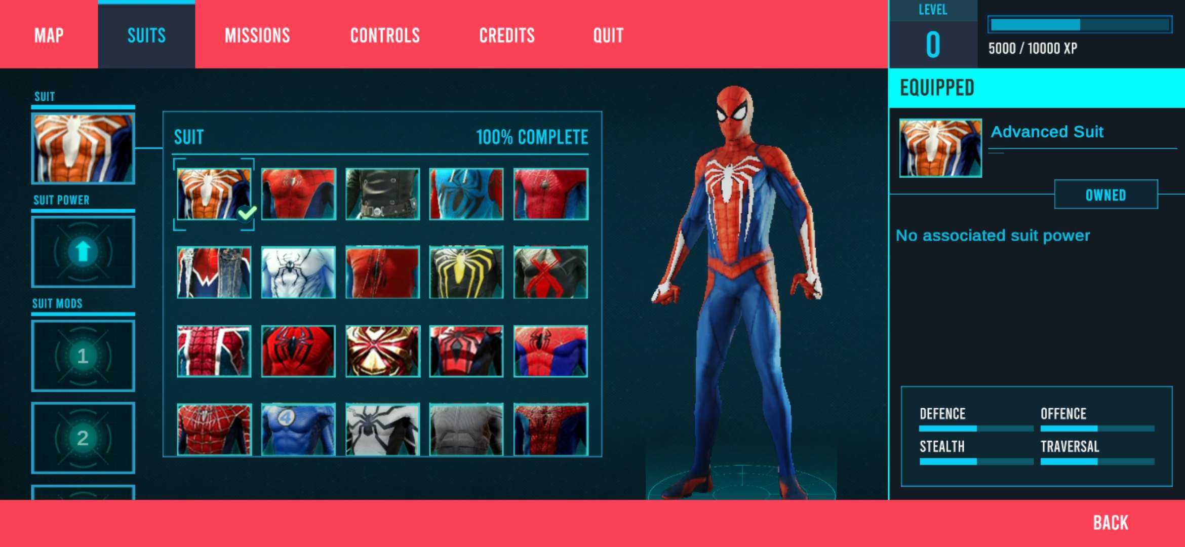 目前更新了 PS4原创 经典 暗影 猩红 斯塔克战衣 朋克蜘蛛 恶灵 荷兰弟自制 反章鱼战衣 不太清楚 英伦蜘蛛侠 猩红 斯塔克钢铁蜘蛛 世界末日战衣 抽帧战衣(*行宇宙) 恶霸战衣 神奇四侠战衣 未来基金会 潜行战衣 超凡战衣​