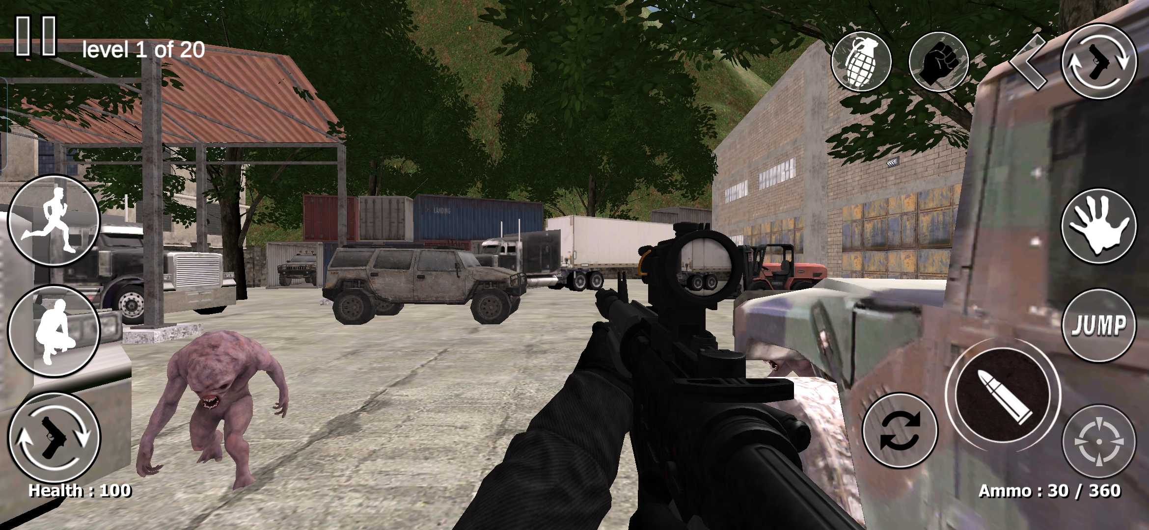 更新介绍 新敌人:狼人 新增近战按钮 新增新的鲜血效果 错误修复 在邪恶怪物中,您迷失了方向,独自一人,需要在致命的病毒危害世界后生存 特点 现代第一人称引擎射击恐怖僵尸动作游戏 20级全面行动-恐怖 强大而逼真的武器 末日下的逼真氛围 直观的控制 支持游戏手柄