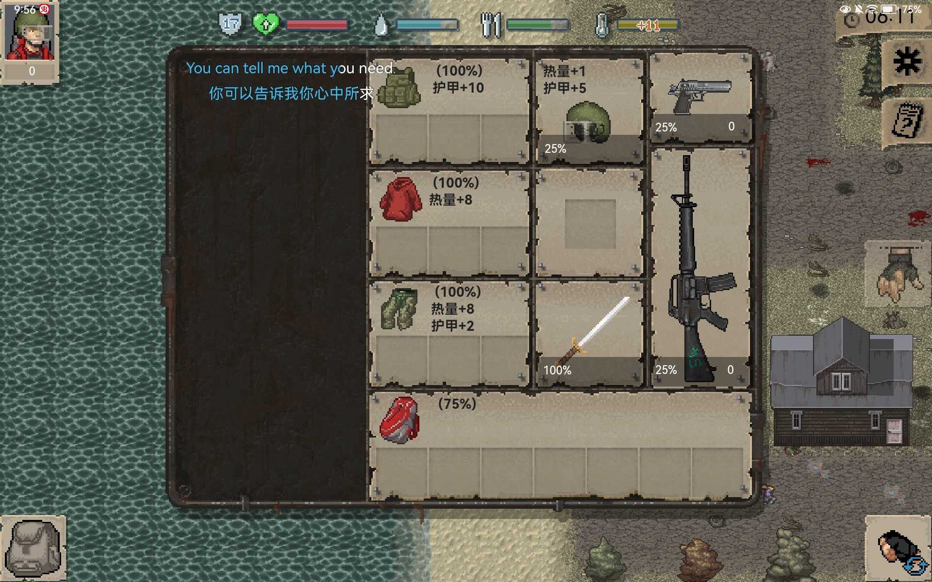我也是真服了 上一个一直待审核 现在上传个新版 上个资源描述:这是个半成品 原本更改了很多东西 但是因为我不小心把安装包给删了 且我没备份… 所以只有半成品 ·修复文本错乱 ·彻底移除神鹰哥语录(不再那么吵了) ·第一个人物初始装备变更(正式更新后将会恢复第一个人物初始装备并更改程序员初始装备) 新描述: ·更新存档文件分享(请下载对应版本) ·1.8.5版本的存档建议下载没帐篷那个 那个有榴弹 ·更改文本内容 ·人物初始装备更新(未更改程序员) 另外 主角一 的初始装备除衣裤满耐久外 其余装备耐久全随机且没有弹药(自带的剑我就没遇到过低于100耐久的)