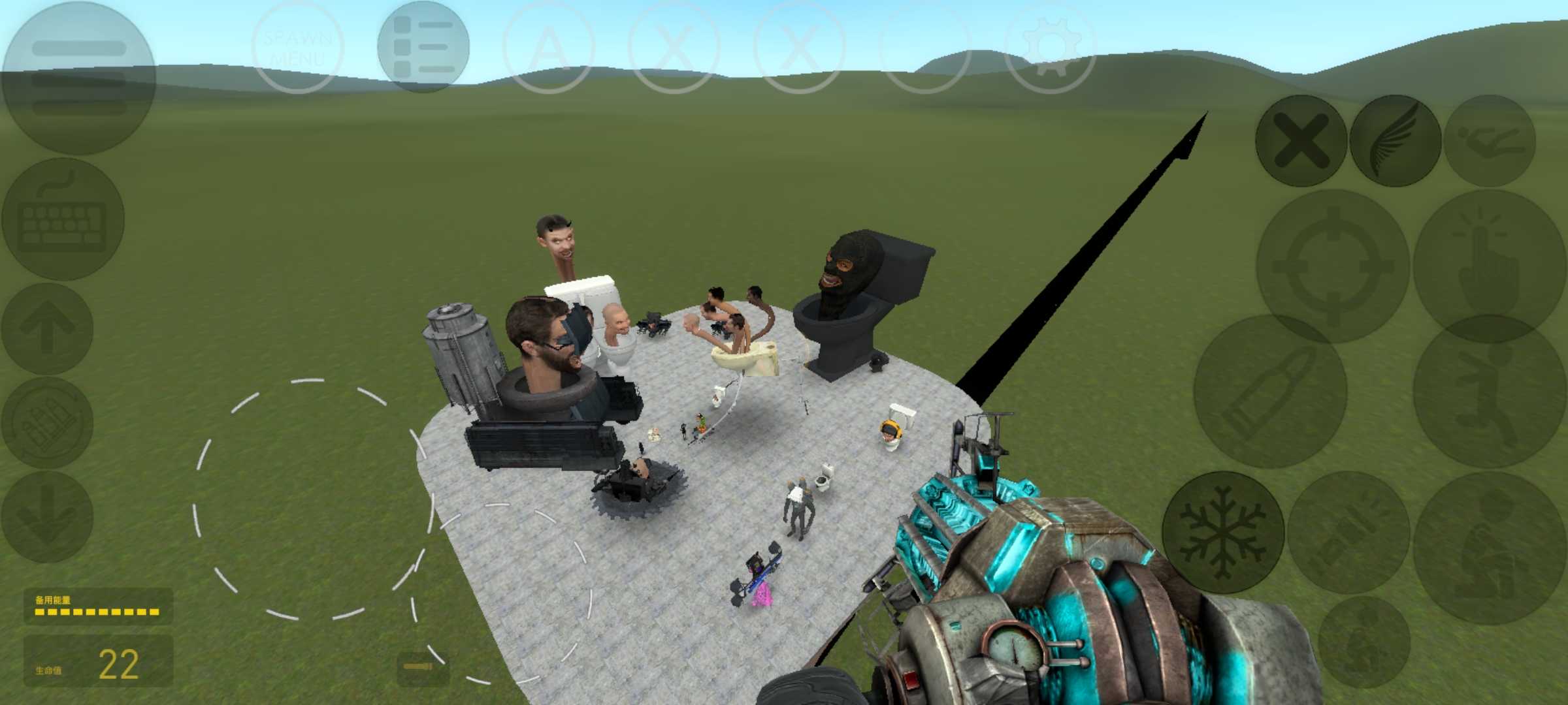 3.0版本加了很多skibidi toilet 武器音效也变了 重力枪改为蓝色 换模型更改 手机玩家可以打开菜单,平板玩家开不了菜单