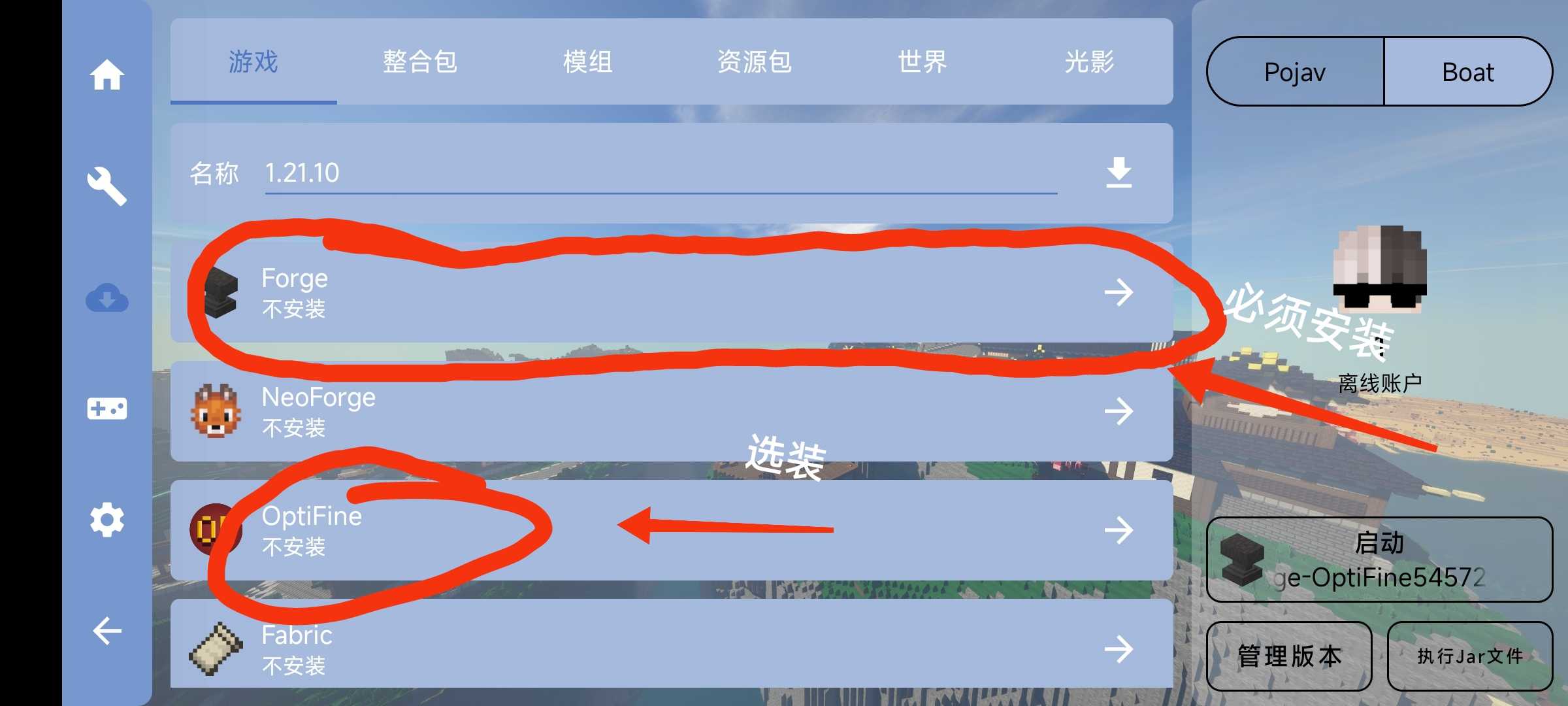 要下模组就要安装Forge,OptiFine应该不用装,安装Forge后就可以去安装自己喜欢的模组