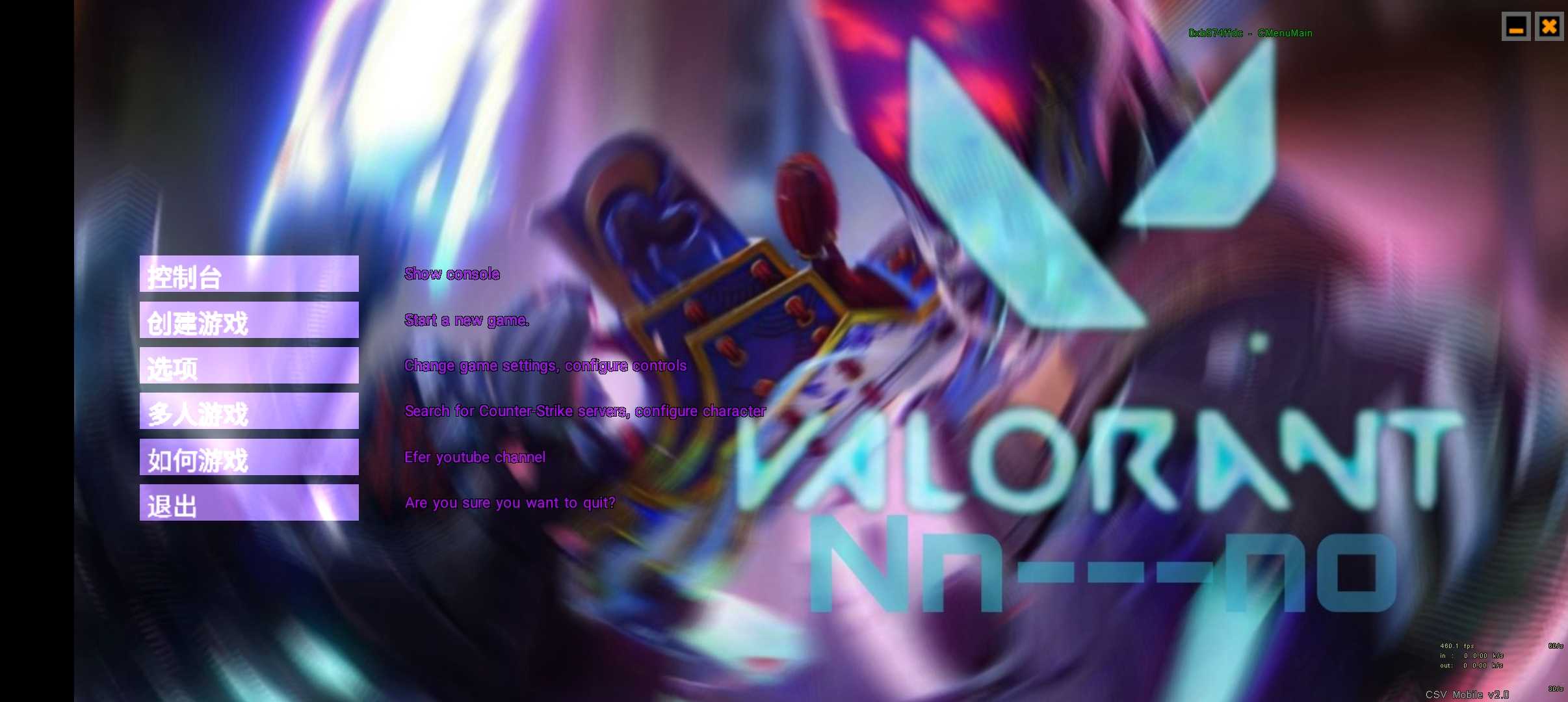 CS 1.6改无畏契约,内置皮肤包,内置菜单加光影调试,本软件由哔哩哔哩的香菜处理器,此软件安装包本来要密码的我把安装包拿过来了,所以说没有密码 海角内部特供版