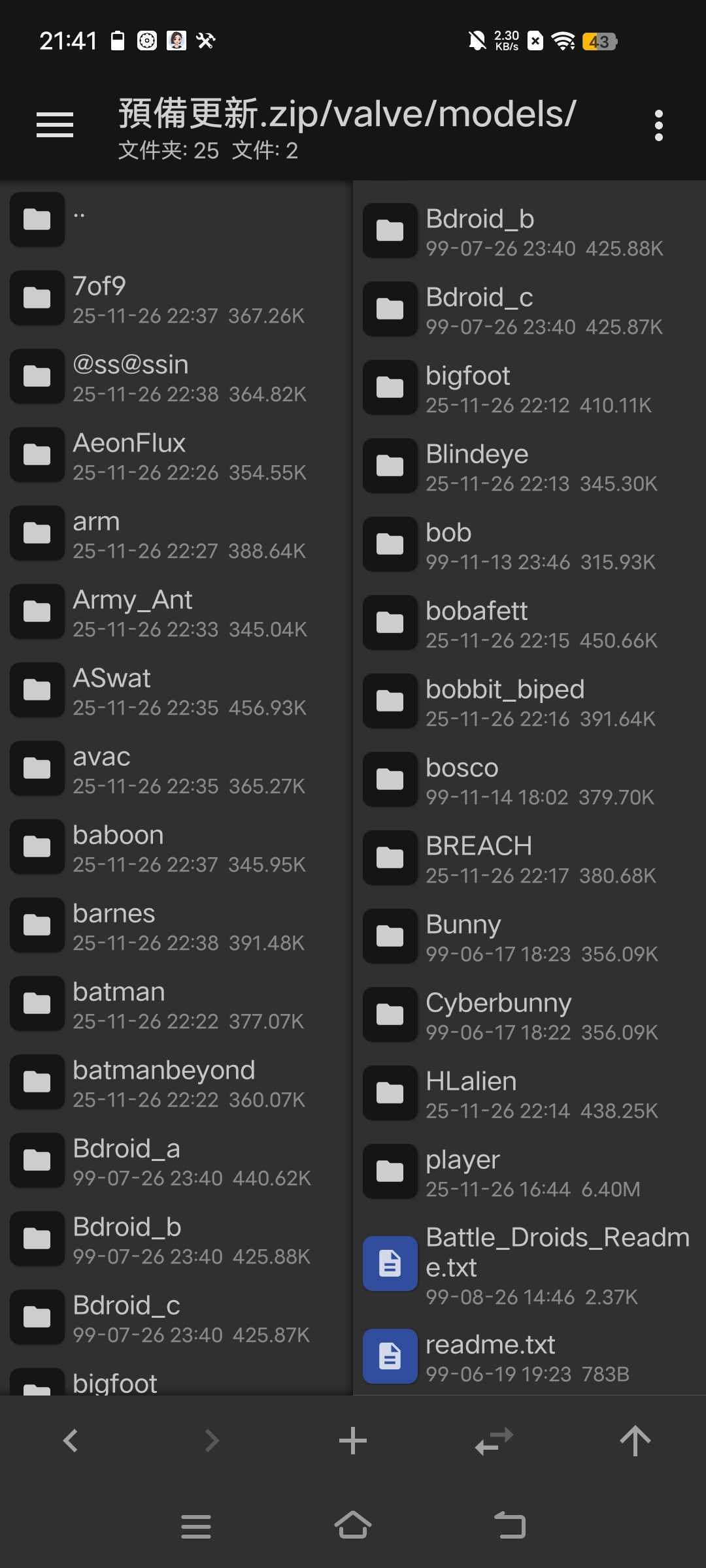 [CN]SR制作,允许转载,请标清原作者 半条命安卓版,使用Xash3D FWGS (Text)0.21 附带大量皮肤、[CN]SR的自 制按键、作弊器(作弊器2号没什么用处) 可以自定义喷漆 点击右.上角白色*可以开启观看模式,再次点击黑色*可以恢复,如果按键变回原版,可以在按键设置里面找到wodeanjiannew启用 可以游玩上行链路战役,在新游戏里面勾选 Half-Life:uplink即可 制作人名单 [CN]SR、Xse54(b站依零小叶子)、fffwust、牢谢不屑、星辰大海呀_kv、茶茶叶子、why so seroius? 、小乖 测试人员名单 fffwust、xinhe、牢谢不屑、亿叠凉蓆、星辰大海呀_kv、呱呱 、小乖 更新日志 (10月19日前的更新日志见半条命part8) 8.2025年10月19日 新增了国庆版牢谢不屑更多功能菜单 为音乐播放器更新了更多音乐 新增了三张测试地图,由依零小叶子制作 分别为FINAL2、FINAL3、FINAL4(三张地图差别不大,建议游玩FINAL4) 新增一个联动多人模式模型,牢谢不屑联合军皮肤,皮肤名称:Jailxie 对按键贴图进行了一定程度的修复 新增了CS1.6启动器的部分文件(容错用) 9.2025年11月23日 新增联动音乐:无兽在意 新增联动音乐介绍 新增多人模式皮肤:HEV大斯莫克、四个高清版科学家、四个高清版HEV科学家、HEV女科学家 修复了他们饿了第一章地图切换菜单错误 10.2025年12月6日 修复了章节名称无法正常显示的bug 把2.gwzgbz改為了gwzgbz,刪除了重複的音樂並且重新排版了音樂播放器 新增了兩首聯動音樂 新增了一些多人模式皮膚 修改了默認按鍵