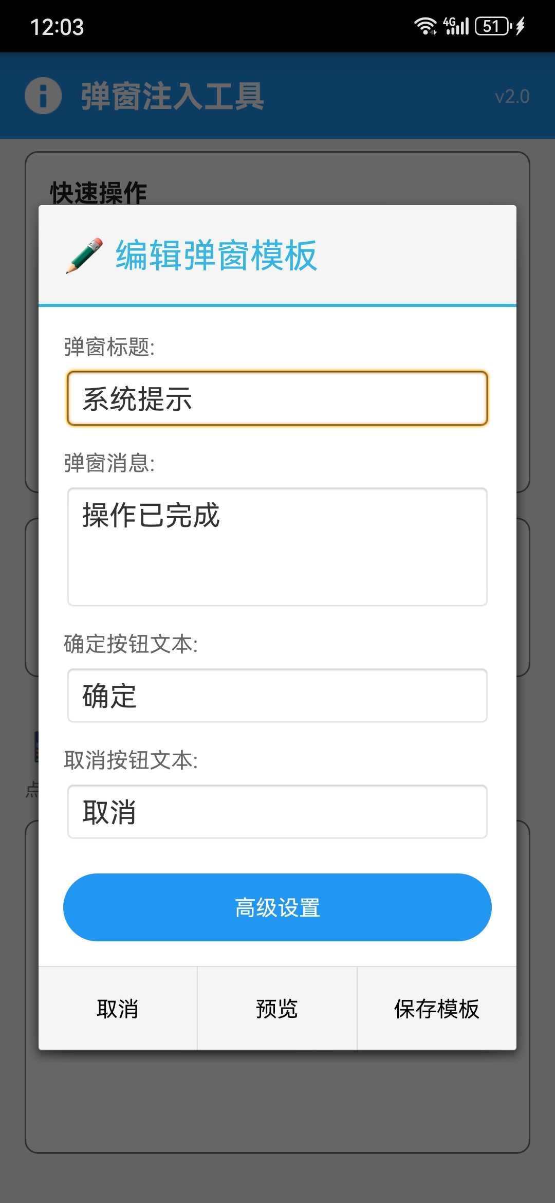 弹窗注入自制版相关信息