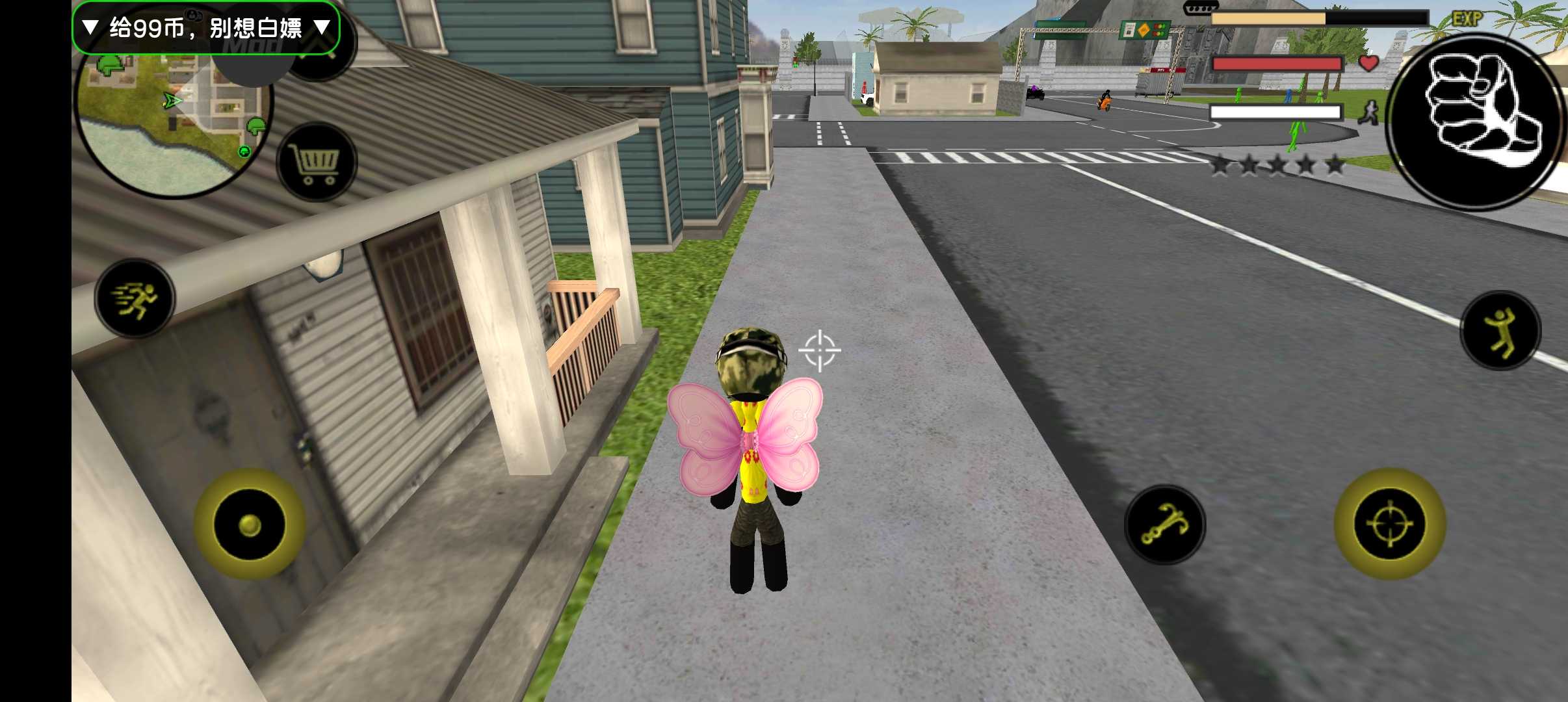 你必须在这个城市但你们别招惹绿色火柴人,军方,因为你打死他,会有很多的军方来打你