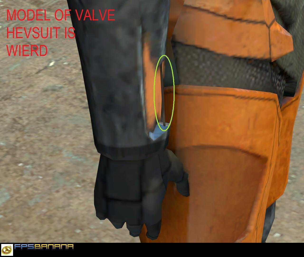 bug详情看第二张valve在设计第5代HEV的时候尽管戈登拿武器的手那里是有类似黄色的东西,但是好日子当中的HEV手臂那里却毫无颜色这个包修复了那个恶性问题gamebanana上还有把那里的颜色移植到手臂上那里的颜色最后一张图上的阀门意思是Valve也就是V社
