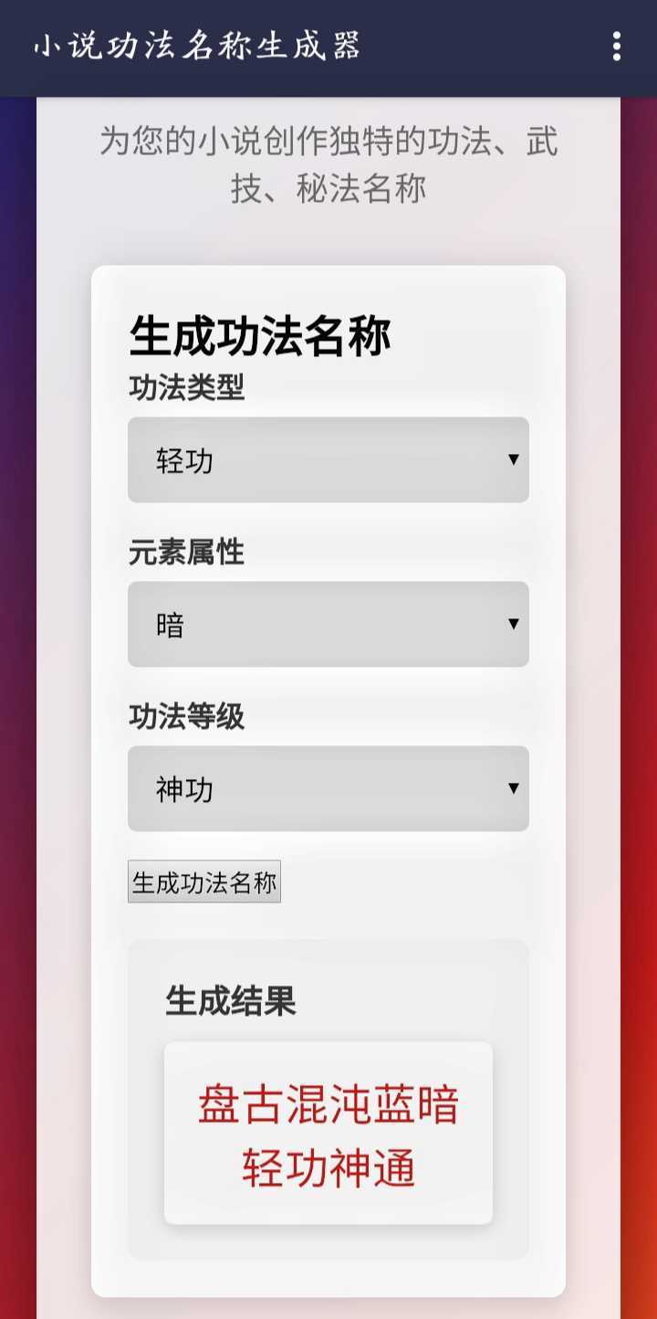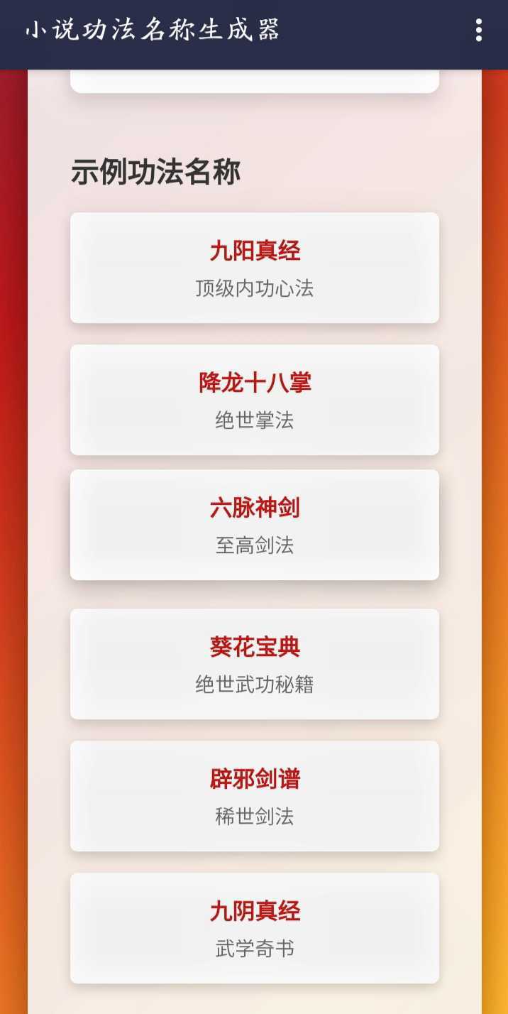 小说功法名称生成器相关信息