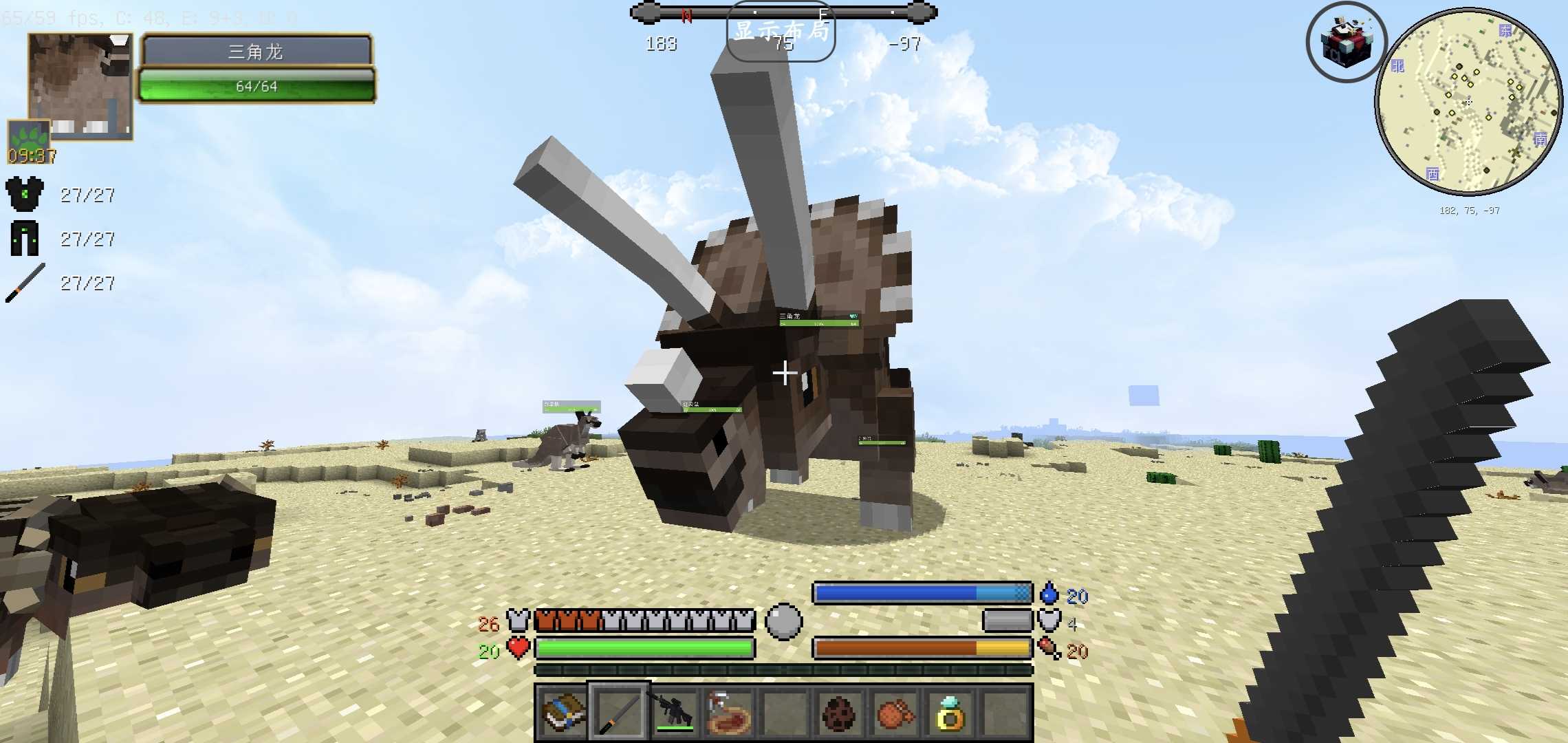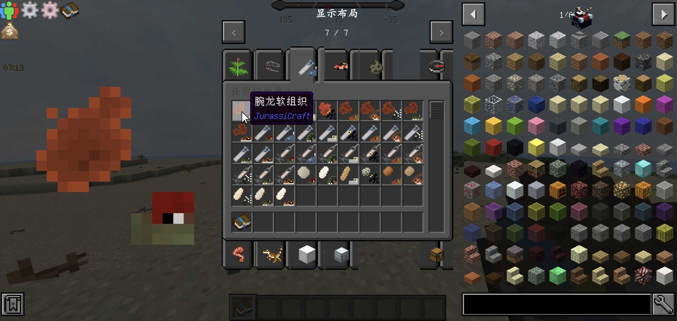 ——版本介绍—— 我的世界:远古重生 整合包版本:v1.2 游戏世界版本:v1.12.2 ——游戏介绍—— 一款主要围绕侏罗纪恐龙为主题的整合包,玩家可在主世界的洞**挖掘各种恐龙化石,通过各种精密的仪器分析,提取细胞,甚至复活远古的恐龙,赶快来试一下吧! ——玩前须知—— 注意: 1:该整合包需要将内存分配拉到8G以上; 2:进入游戏后需要等待游戏配置全部加载完才可点击背包; 3:如果遇到崩溃,闪退等问题可重进试试,无法解决就换渲染器,如果还玩不了的话就换手机; 4:没有mod就在启动器内找到版本隔离,打开或者关闭;