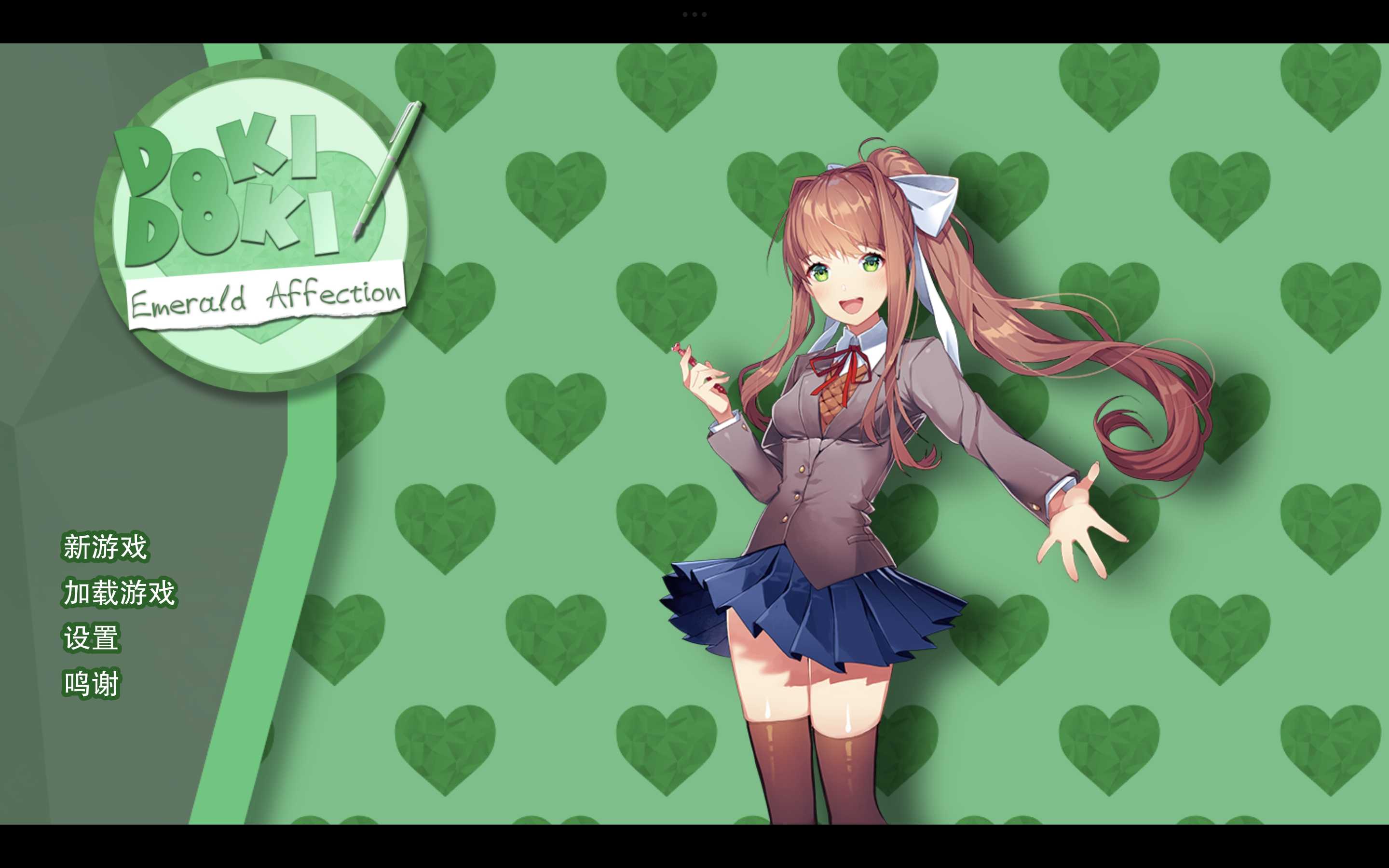 DDLC模组《Doki Doki Emerald Affection》介绍 重要提示:本模组仅为基于原作的二创故事,所有情节均为虚构创作,不代表原作角色的真实设定。无论剧情走向如何,都请大家保持理性游玩,切勿过度代入哦~ 中文名字:《翡翠情愫》 英文名字:《Doki Doki Emerald Affection》 核心方向:莫妮卡专属剧情、毕业季叙事、恋爱向互动、剧情向戏剧体验 核心亮点:故事设定在加入文学部一个月后、毕业仅剩数月的节点,聚焦主角对莫妮卡的情感挣扎,围绕“想要让莫妮卡幸福”的心愿展开叙事,探索主角能否鼓起勇气直面心意,同时融入对生活困境与情感选择的刻画,为莫妮卡打造了深度情感向的专属故事线 游玩时长:中等篇幅,约4-5小时可体验完当前试玩版内容 推荐玩家:偏爱莫妮卡、喜欢毕业季情感叙事,想体验深度角色向恋爱剧情的DDLC玩家 是否恐怖:无恐怖元素,整体风格偏恋爱与戏剧,主打莫妮卡的专属情感刻画与剧情推进 最后再次提醒:游玩时请务必关注自身的承受能力,如果感到不适及时暂停。制作组的“重要提示”非常真诚,请以一个观察故事的心态理性游玩。 祝各位玩家游戏愉快! (此介绍AI生成)