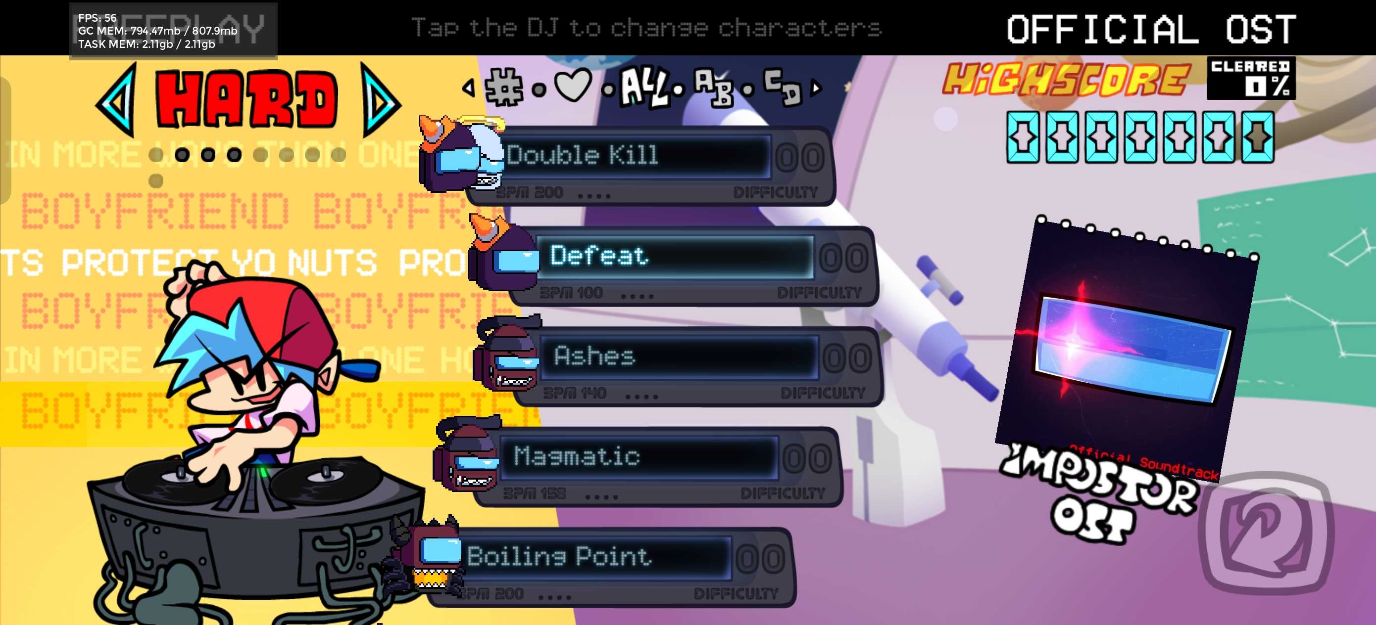官方引擎0.8.0,删除了没必要的菜单背景,只保留了周和歌曲 不出意外的话没啥大问题
