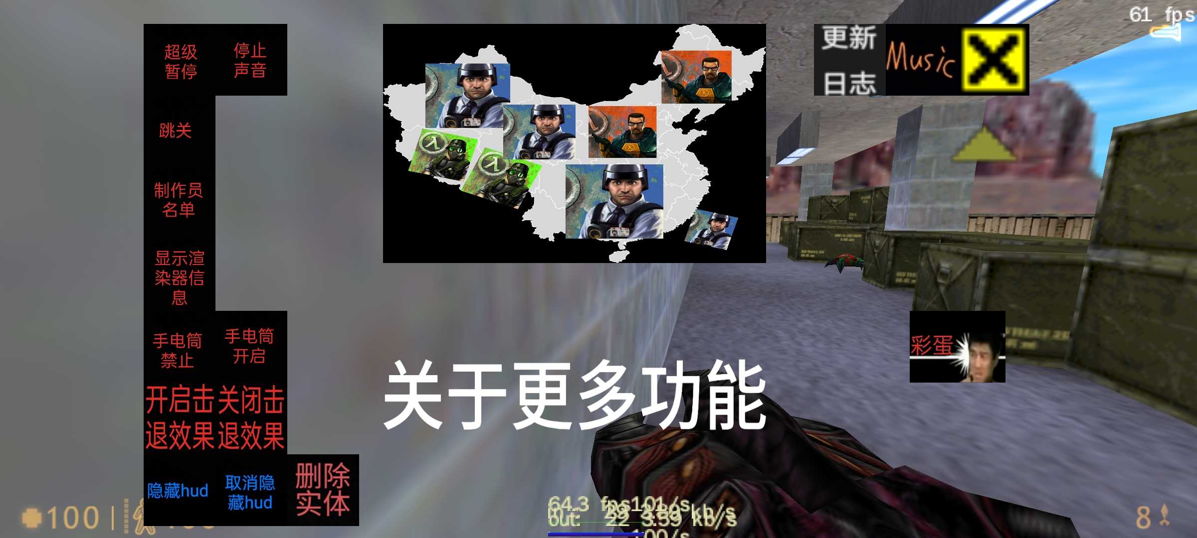 [CN]SR(Yurci·SR)制作,允许转载,请标清原作者 半条命安卓版,使用Xash3D FWGS (Test)0.21 附带大量皮肤、[CN]SR的自制按键、作弊器(作弊器3号没什么用处) 可以自定义喷漆 点击右.上角白色*可以开启观看模式,再次点击黑色×可以恢复,如果按键变回原版,可以在按键设置里面找到wodeanjiannew启用 可以游玩上行链路战役,在新游戏里面勾选Half-Life:uplink即可 若無法正常安裝請看安裝教程 https://b23.tv/6rjBoEd 制作人名单 [CN]SR、Xse54(b站依零小叶子)、fffwust、牢谢不屑、星辰大海呀_kv、茶茶叶子、why so seroius? 、小乖、不知道在燃什么 测试人员名单 fffwust、*inhe、牢谢不屑、亿叠凉蓆、星辰大海呀_kv、呱呱 、小乖 、不知道在燃什么、社死你、猎头蟹、跪下了吧 更新日志 (25年10月19日前的更新日志见半条命part8) (25年12月27日前的更新日誌見半條命part13) (26年1月10日前的更新日誌見半條命part17) 17.2026年1月10日 新增了一首歌 修復了strings.lst(主菜單文字) 回歸了pak3.pak(他們餓了容錯包) 刪除了部分無用的文件 本次更新建議刪除旧版本后安裝 18.2026年1月11日 新增了更新日誌查看器 新增了兩首歌 更多功能更新 科學家生成菜單更新 將士兵生成功能加入到黑衣人生成菜單 將custom文件改為內置文件 重新排版了NPC生成菜單