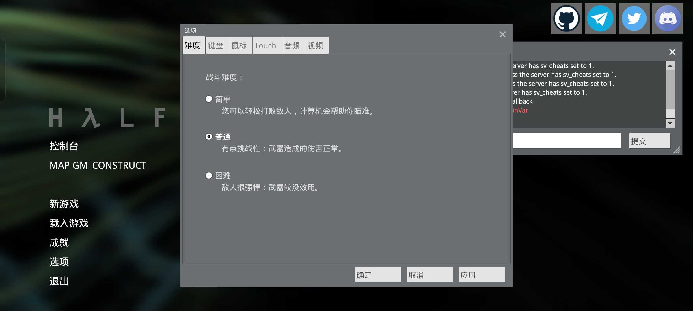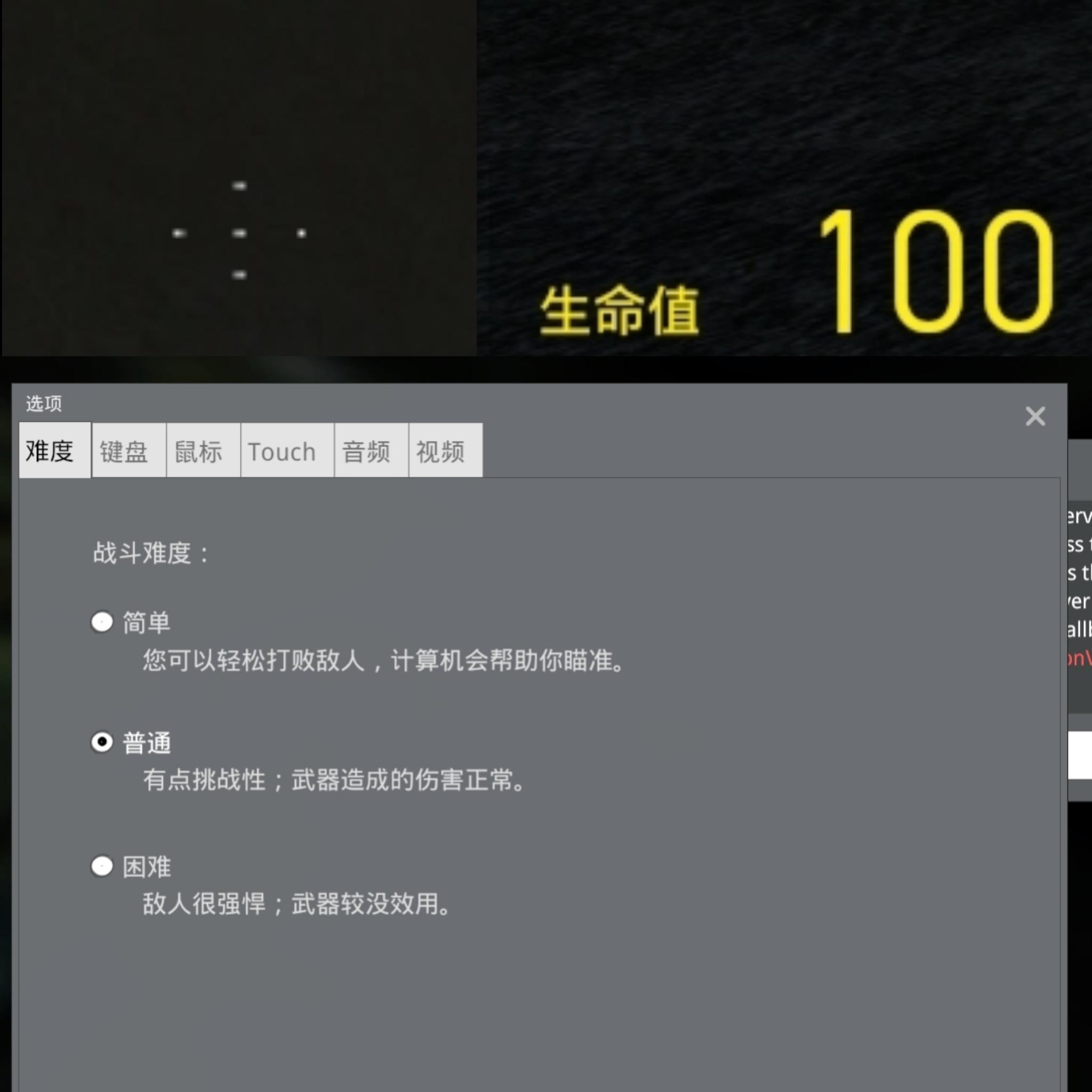 我将控制台、选项、新游戏等所有半透明界面都改成了不透明界面,我又将准星两边的黄条去掉了,以得到高仿的目的