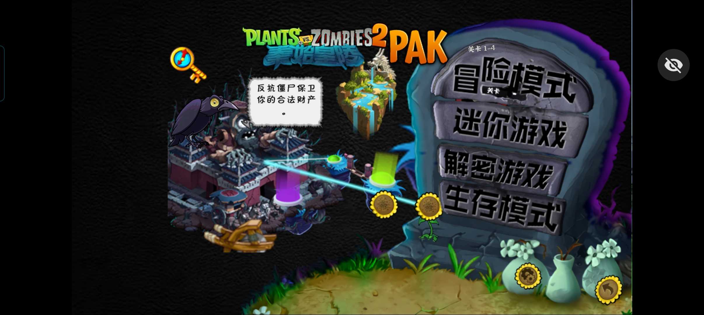 植物大战僵尸秦始皇陵,中文版有菜单,过不了关可以用菜单。