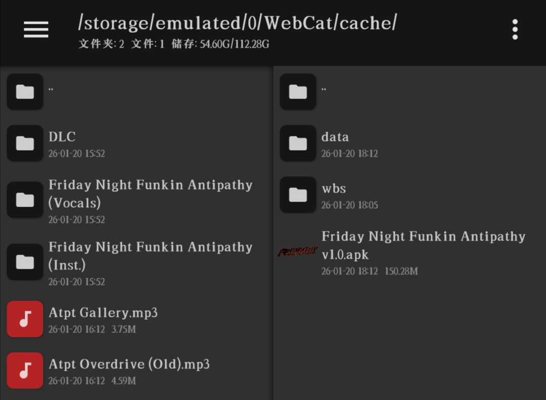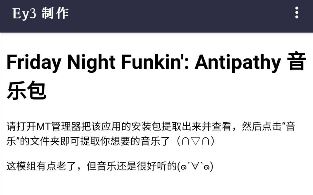 Friday Night Funkin': Antipathy 较早的暴力迪吧模组 第一次知道FNF模组还有DLC ∑( ̄□ ̄;) 下载安装后用MT管理器提取安装包后查看,音乐就在“音乐”文件夹里(∩▽∩) 已补充音乐封面、专辑、作者( ̄▽ ̄)〜