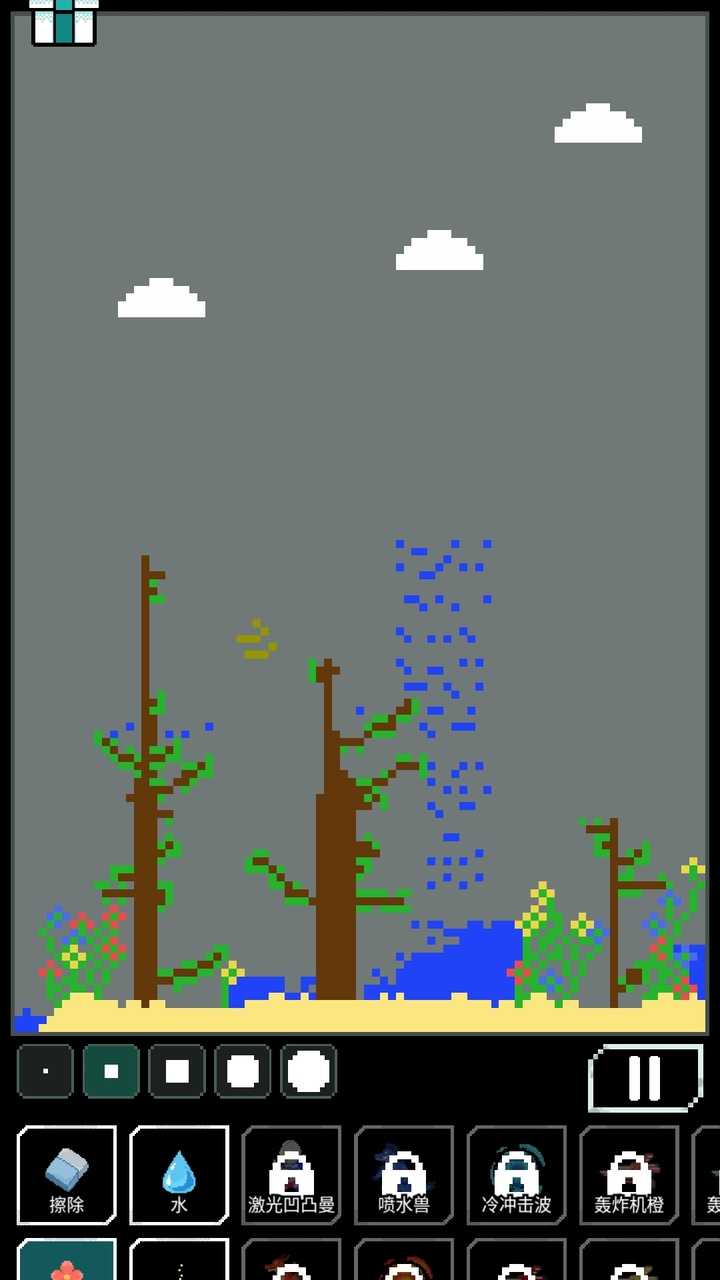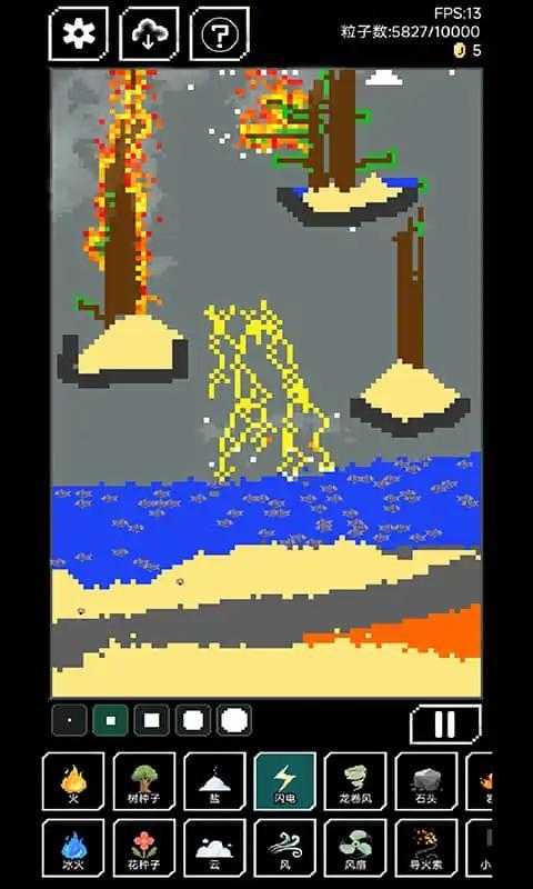 这是一个像素沙盒游戏,你可以将多个不同的元素放入场景中,形成一个独特的小世界。你可以将池子蓄满水,然后在里边养鱼;也可以在沙子上种上花和树。你可以用酸腐蚀地面;也可以创造出一个龙卷风,把沙子吹的满天飞。你也可以将火药和硝酸甘油放在一起,体验火焰四射的爆炸威力。你还可以把手雷,炸弹等扔到场景中,亲手毁灭自己创造的小世界。在这个游戏中,你可以享受创造世界的乐趣,也可以体验破坏万物的乐趣!游戏中共有水、火、冰火、火药、人等元素,加上鸟、蜜蜂、蝗虫等生物,以及花、树等植物总计 40 种以上的各式各样的元素。在游戏中,你可以下载其他玩家分享的世界来进行体验。如果你愿意的话,可以将自己创造的世界分享给别的玩家下载。