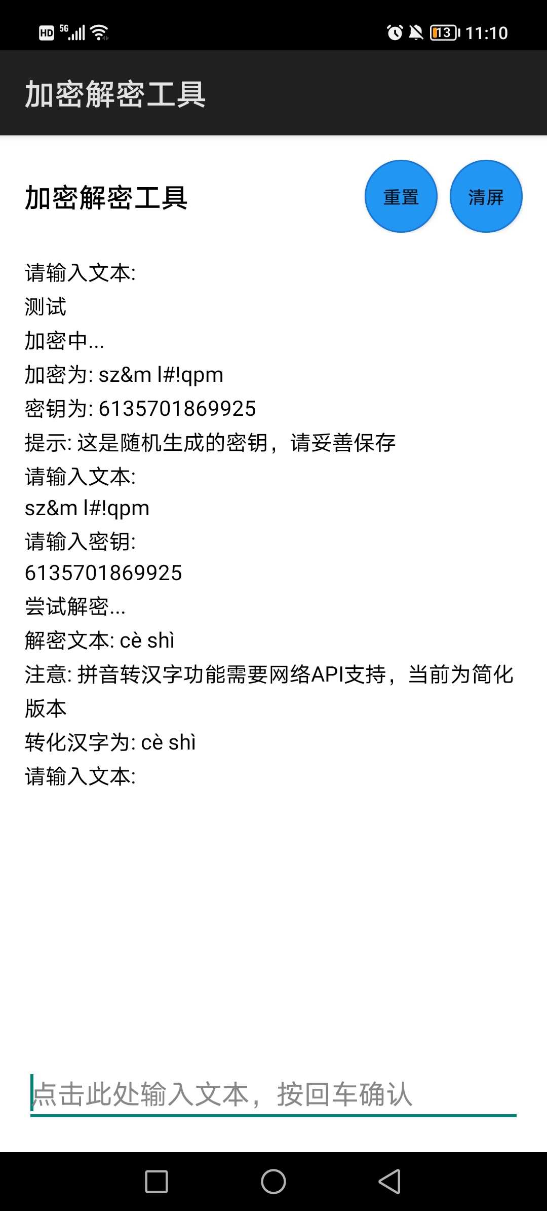 用ai做的一个加密文本小应用,加密算法我自己想的,由于原项目不小心删掉了,所以我修改不了这个应用了,本应用有个小bug:不能复制输出的文字,建议搭配ocr文字识别