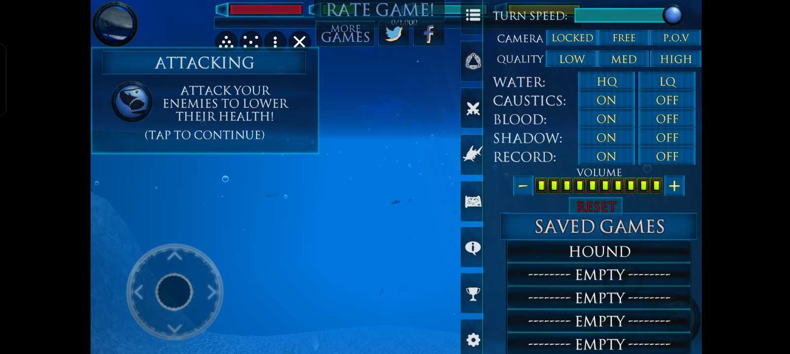 鲨鱼摸拟游戏,感觉一开始玩会很僵硬。 后面就熟悉了