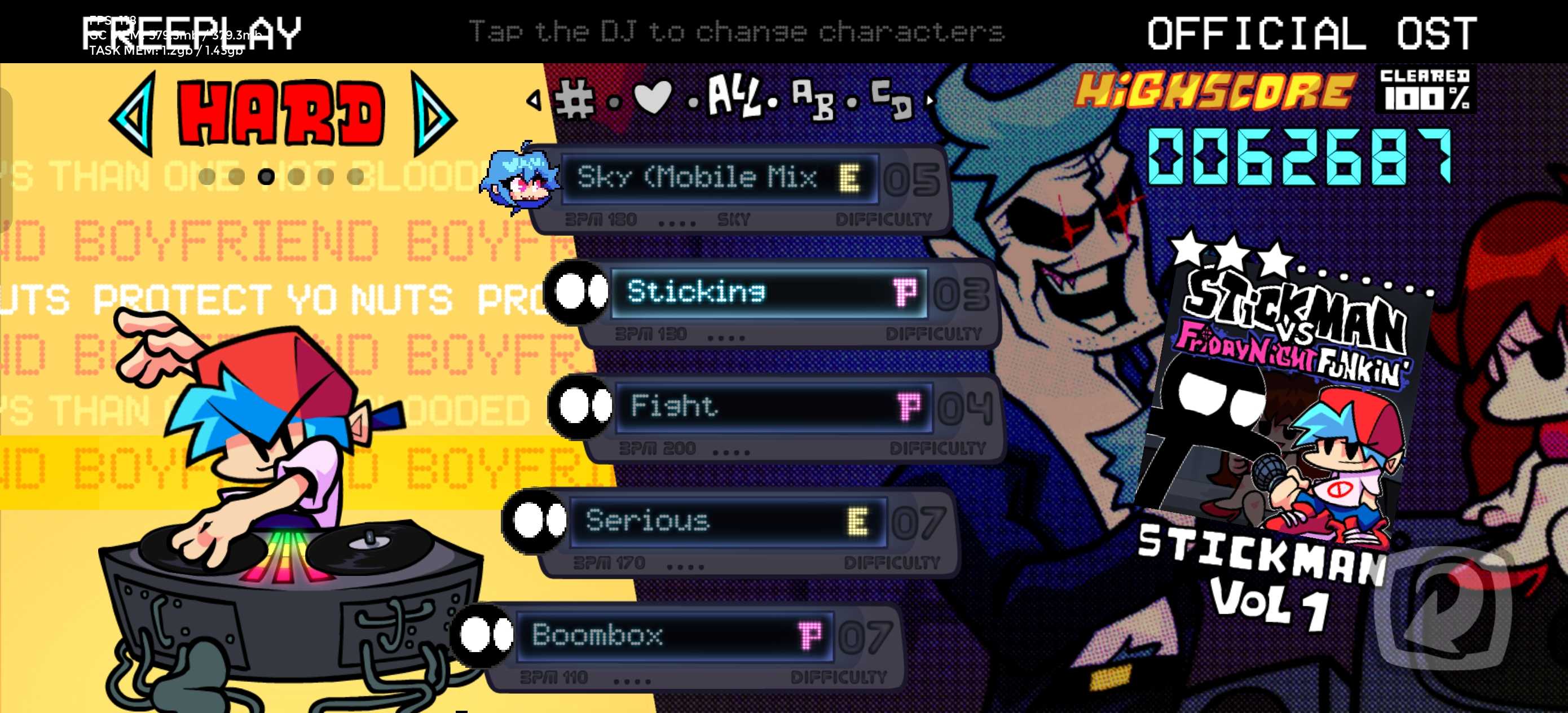 官方引擎0.8.0,删除了一些背景菜单,有周,有动画,还有几首隐藏曲,有点bug,自由模式难度会错位