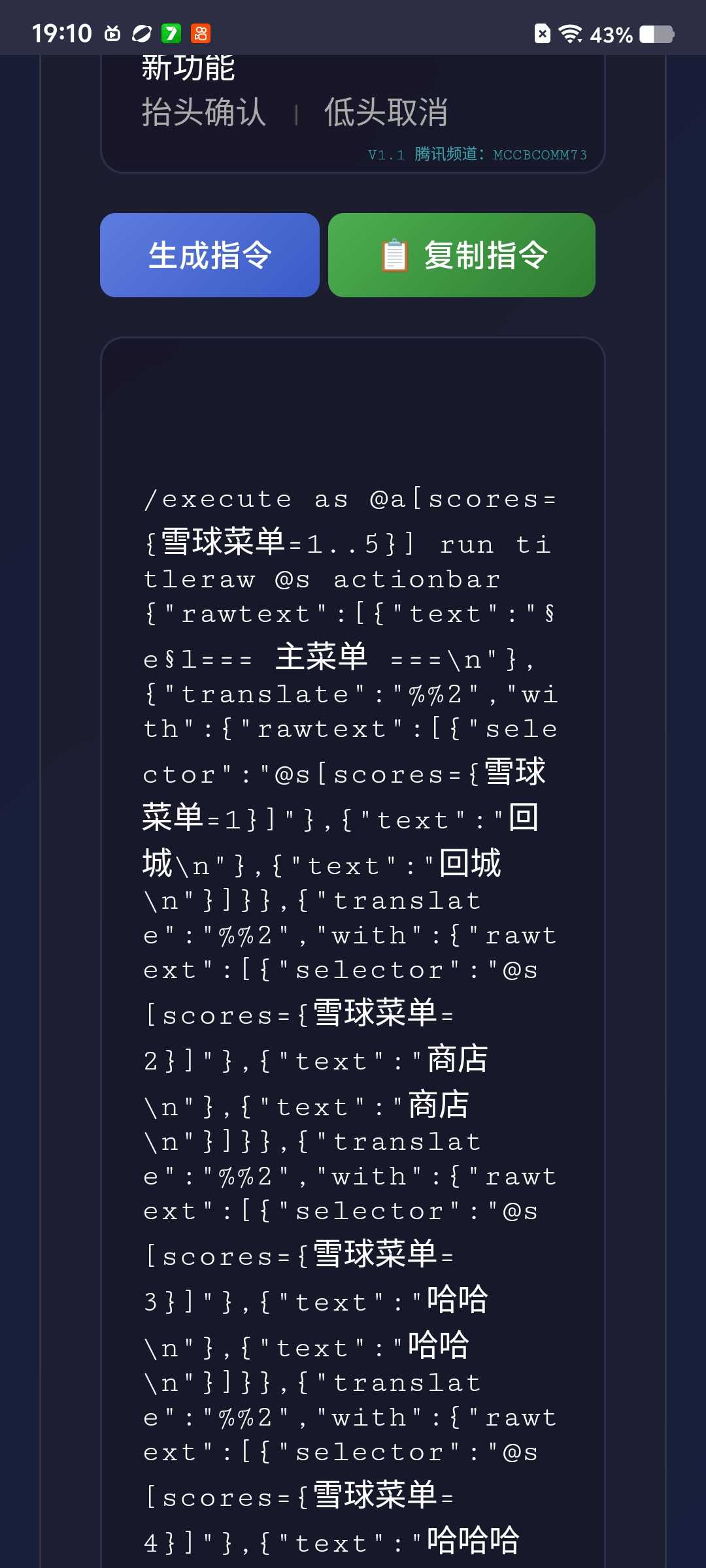 可以用这个软件制作我的世界雪球菜单,可以直接生成指令和复制。