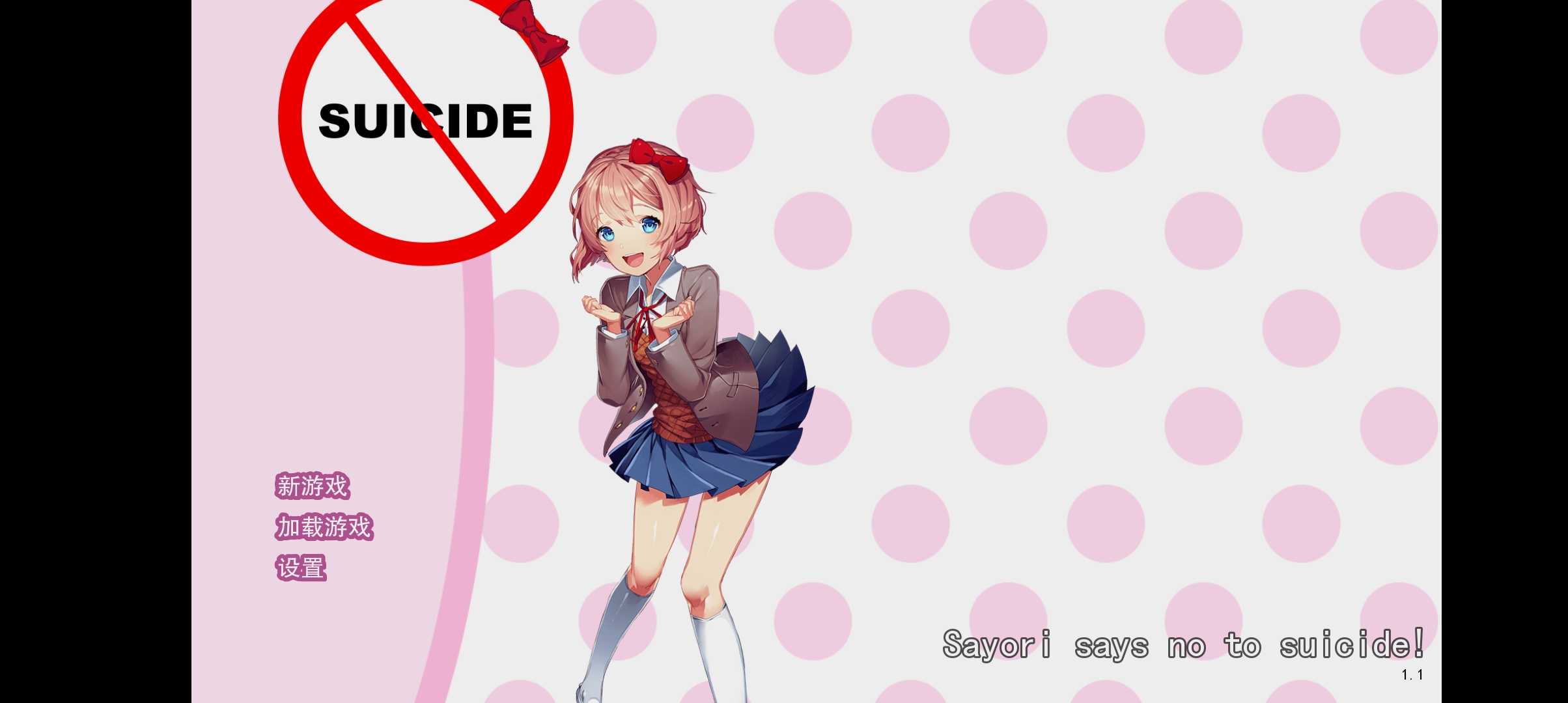 130.纱世里对**说不(Sayori says no to suicide) 篇幅:短篇 类型:科普 meta 角色向:全员偏纱 时长:半小时 作者:Tormuse 汉化:曦山,斌斌,减堂之牙 简介:这是篇由纱世里主持(加上她一些朋友参与)的公益宣传,讨论如何对待抑郁和**想法,也包括一些与**倾向者接触时可能有用的话。本模组意图在保证好娱乐效果的同时带来一些教育意义,不过也许哪天能真的救到某人的生命呢。 (能有用自然最好,原作者会非常高兴的 )