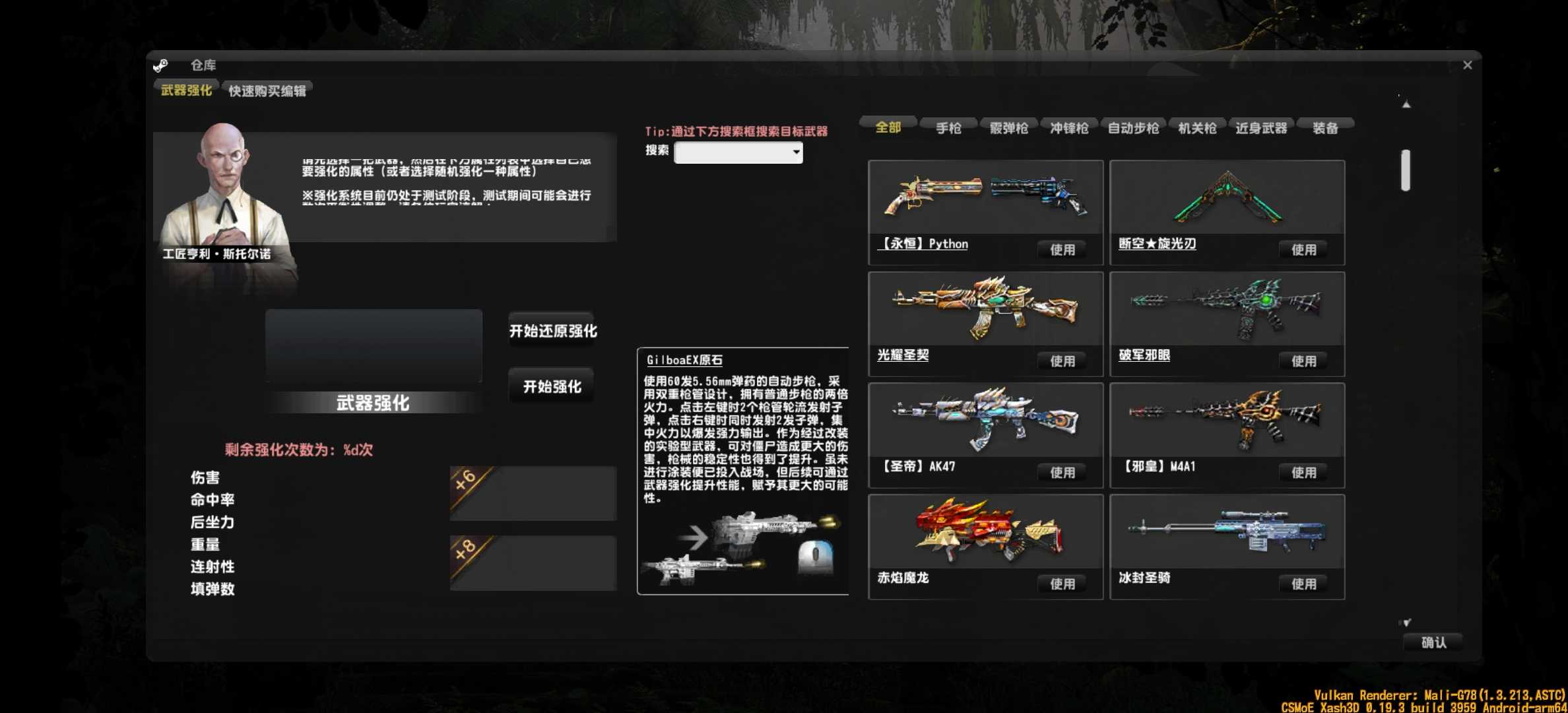 CSMoE Build 3959版本更新预告【新武器】- 破军邪眼【可强化】- 光耀圣契【可强化】- 原石M79【可强化】- 衔宝追霆- 旋光刃-精良- 旋光刃-稀有Ⅰ- 旋光刃-稀有Ⅱ- 旋光刃-超凡Ⅰ- 断空★旋光刃【可强化】【新人物】- 【鸣潮】千咲 模型作者:Kinich (字体没"咲"这个字这个游戏内显示不出来==)【内容更新】- 武器彩漆、称号更新至国服1/28版本- 移动端增加一键购买主武器弹药按钮【玩法调整】- 为了避免BOT开局乱丢手雷现在不给BOT手雷了- 现在没有狂热将不能进化为黄金僵尸- 现在领主僵尸只能通过时间积累成为黄金僵尸- 增加黄金僵尸持续时间- 随机生化z不会进入狂暴母体模式【模型&特效优化&仅PC】- 现在支持使用外置alpha通道的$0a贴图,即龙爪、巨岩猎卫、衔宝追霆、迪欧斯地刺的模型效果改善- 重写了SPR贴图和喷漆系统,万钧神威、冰璃寒蟒特效改善,如有新的BUG请汇报【修复内容】- 修复【断空】旋光刃右键切枪再切回变为A模式模型的问题,【断空】旋光刃左键支持穿墙- 修复未采用外置贴图的武器黑手问题,修复红绿兽颅黑手的问题(仅PC)- 修复巨岩猎卫、曙光辉翼等移除鬼手粘脚问题【特别说明】:本次更新需卸载旧版本,否则会造成部分功能不生效的问题。
