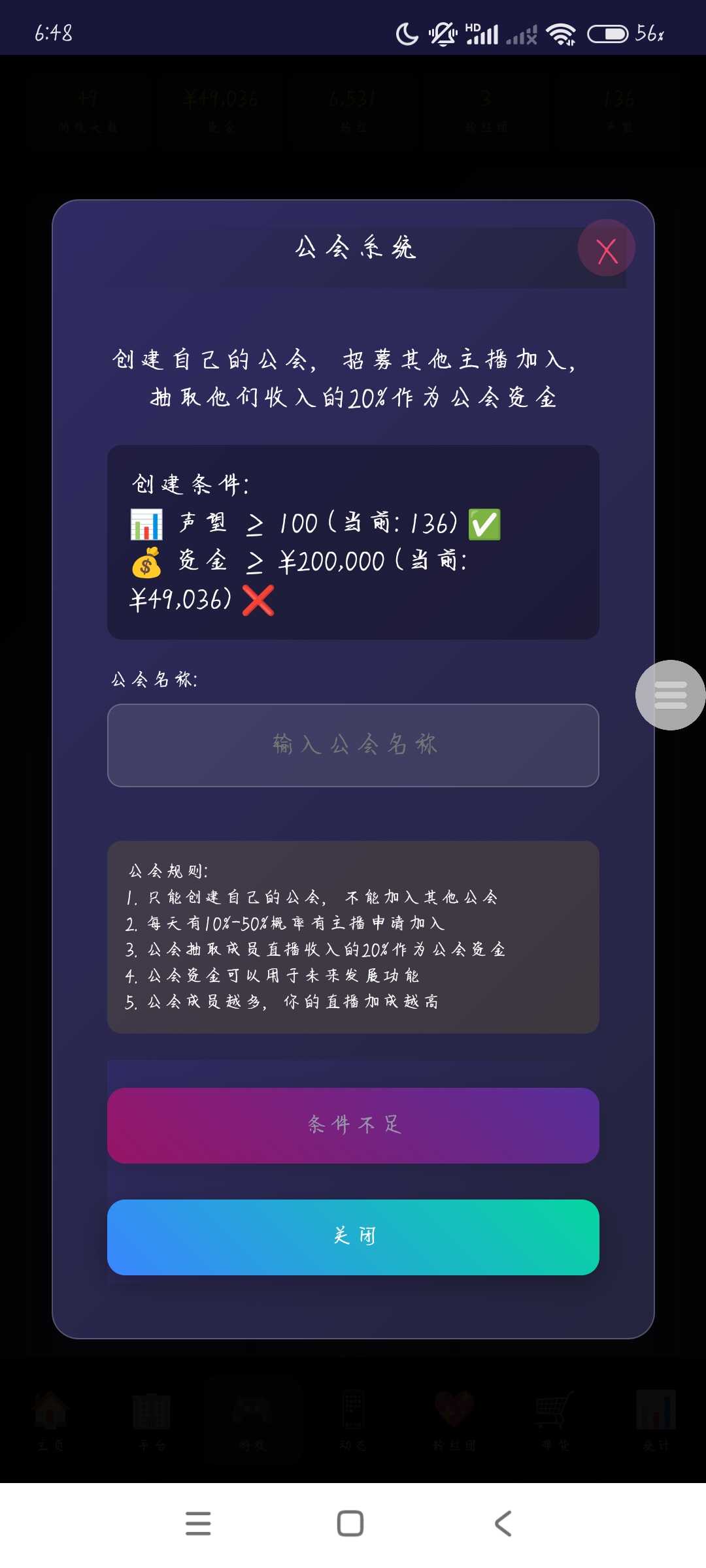 1.整改资产功能、直播互动频率 2.增加弹窗事件、黑粉评论(负面影响) 3.全新版本公会系统、公会加成效果 4.其他优化