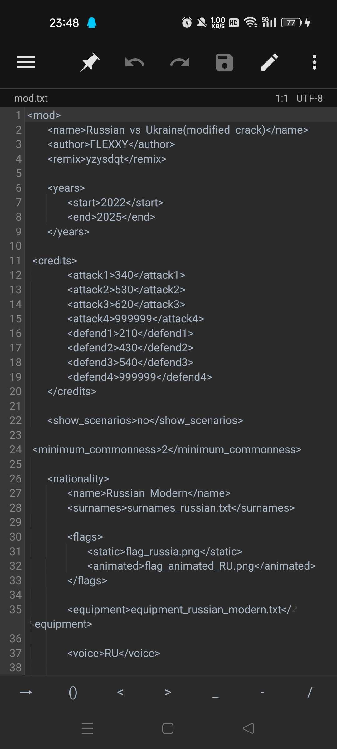 修改了一些单位的武器配置&装甲与弹药,注意,人数有上限,推测最大是120人,虽然目前只有rsbix添加了更多人员,但是如果rsbix选太多会有单位变成滚木的,另外,因为技术原因,武器伤害&防御力&血量&地图都无法修改,步兵还是会死,坦克我通过将其装甲厚度修改为9999达到了无敌的效果,但有时也会意外被摧毁,原因不明,魔改单位后缀都会加一个*作为标记 原本仅私下游玩,不要指望我会再优化本魔改版的bug和问题,我**+优化就已经快花了一个星期了,每天通宵,如果有意见,想搞自己的单位,可以问我,我可能没那么厉害,但至少不用摸索基础代码了 注意:Russian *阵营含有魔改单位,American ww2是测试阵营,不要让人机选择,否则游戏无法正常运行,尤其是Russian *,除非你想看到两个无敌单位互相肘击肘到天昏地暗大道磨灭 原作者是FLE**Y,疑似俄罗斯人,我是三创,代码里有我的签名:yzysdqt,或者一只野生的青铜 我尽力了,接下来靠你们摸索吧