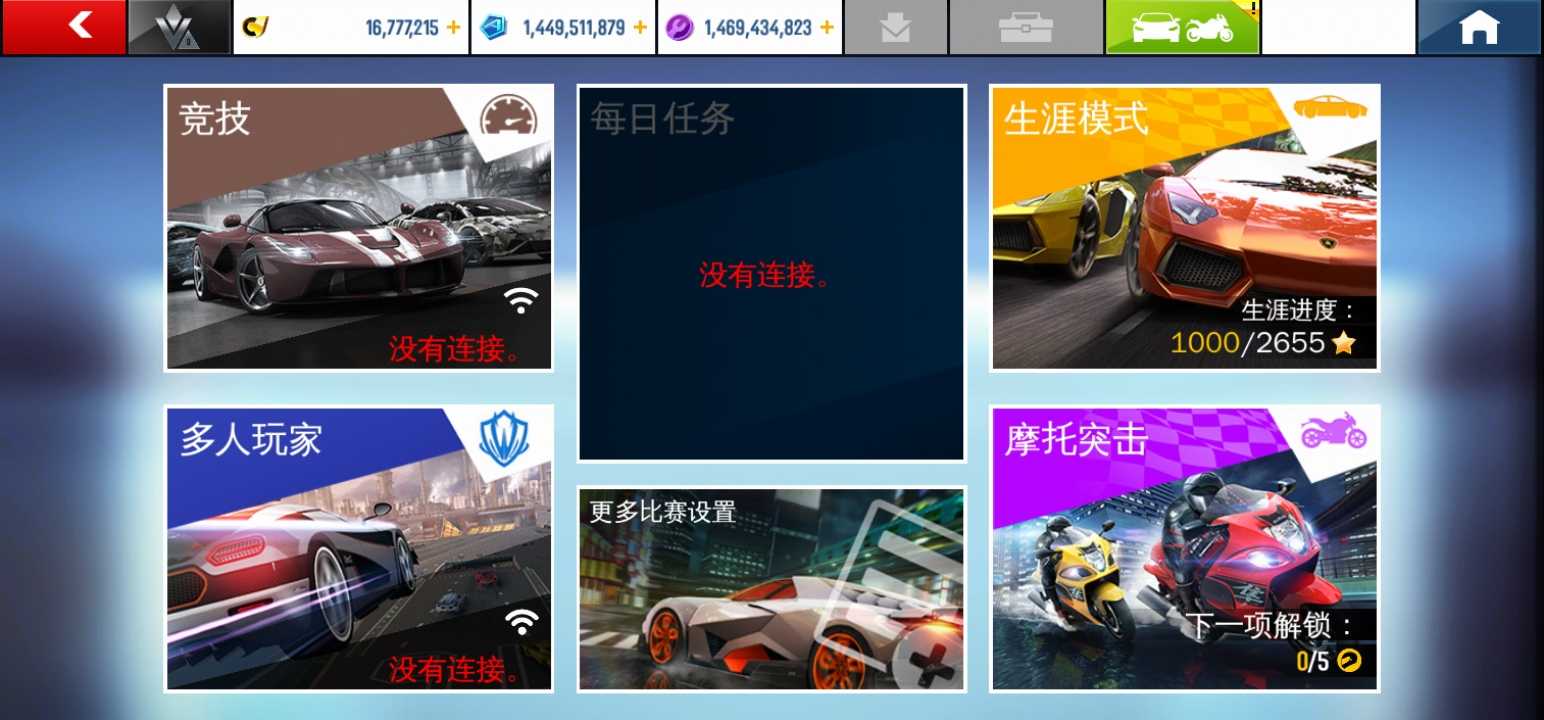请断网进入游戏,否则提示更新 -车辆全解锁 -大量货币 -生涯进度1000/2655星 -部分机型支持最高画质