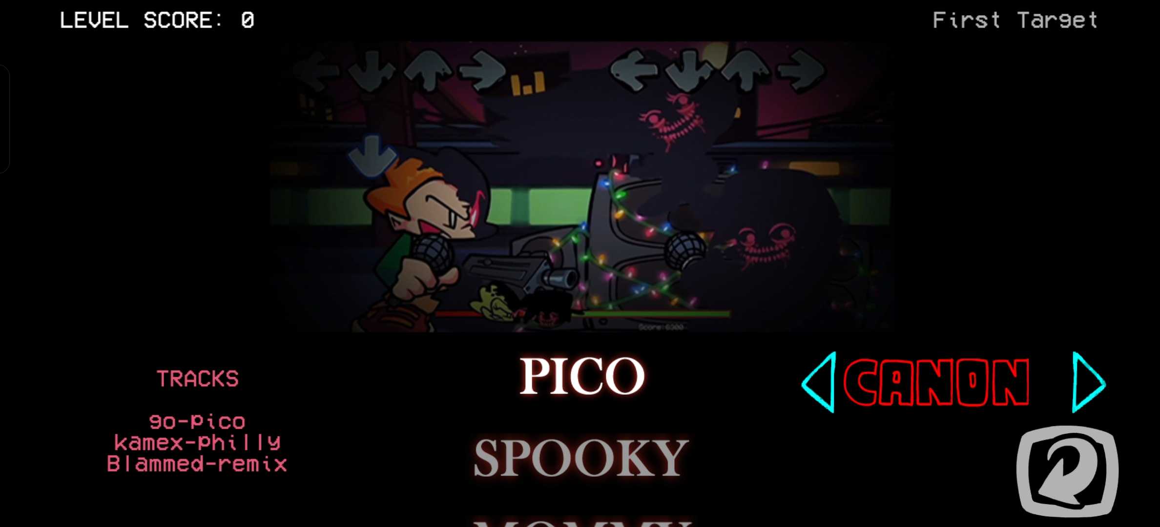官方引擎0.8.0 有开场动画 一共5周 十几首歌曲左右 不会装的看我个性签名 注意事项:主页面是空壳 点以前的位置就能点开 一开始会报错但不影响正常进游戏 只能玩CANON难度 最后一周星河pⅰco是空壳玩不了 其他就没啥了 少白嫖