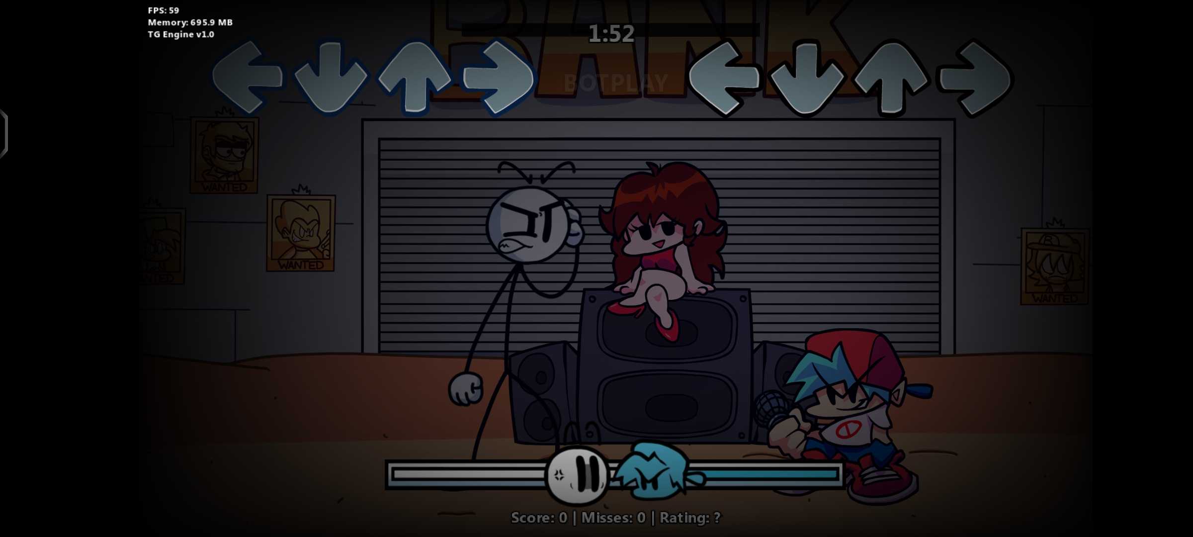 ——禁止搬运—— ——盗者没服目—— 模组已取消制作,模组原链接:https://drive.google.com/file/d/1RTym2ddZla6t5rZYbOgjGLJJI2onfRdL/view 应该是移植吧?( 把nyeh,mad hatter的铺面重写以便运行在更高版本的引擎上 自由模式新增tickets please(其实就是我拿3.0的铺面套用新曲罢了。,。,。) 建议使用TG引擎或者NF引擎 然后就是建议你们不要开Downscroll,不然我写的这个血条lua多多少少会出点问题() 祝你们游玩愉快