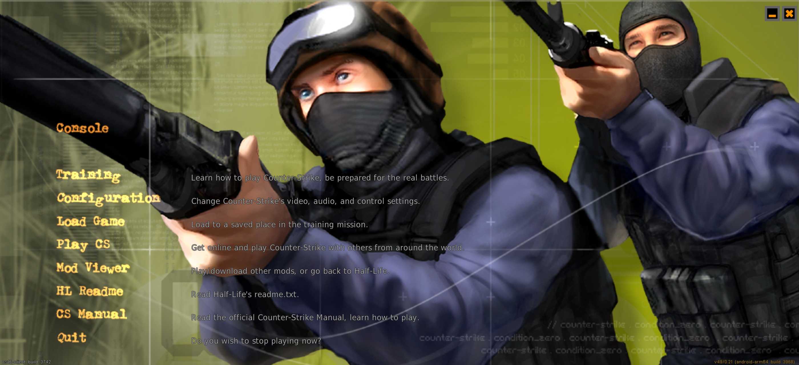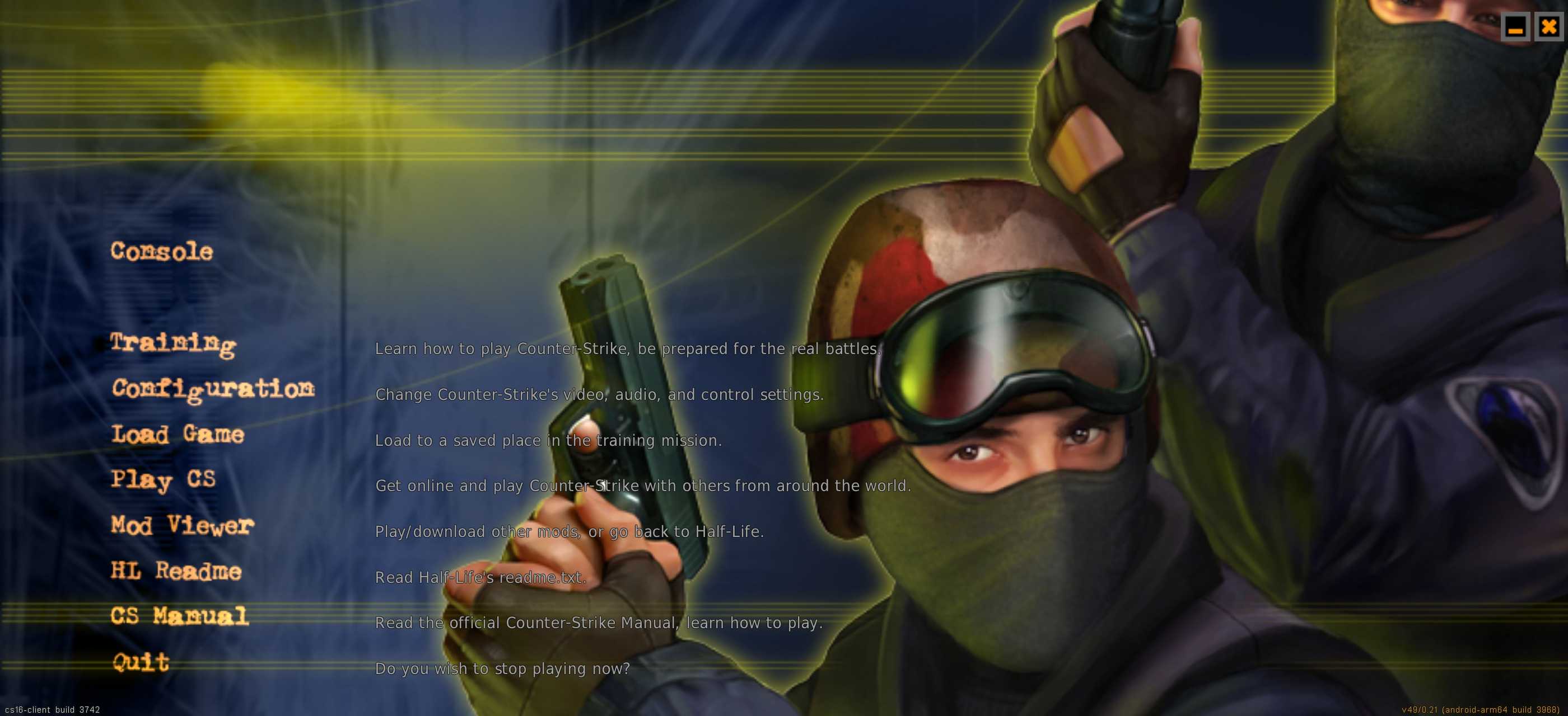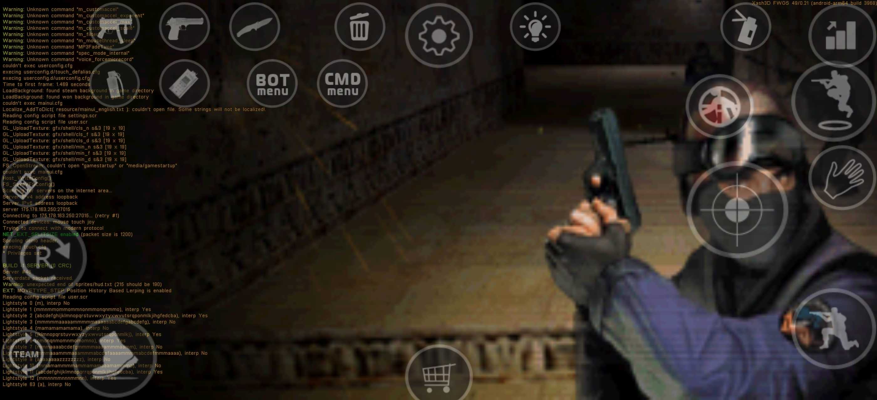CS1.6与他的新引擎,按键不会乱码内附启动器与新版引擎,如果解析失败就用mt管理器拆assets把里面的apk安装把ExaGear.zip里面的xash文件夹解压到/sdcard下,投币再走叭