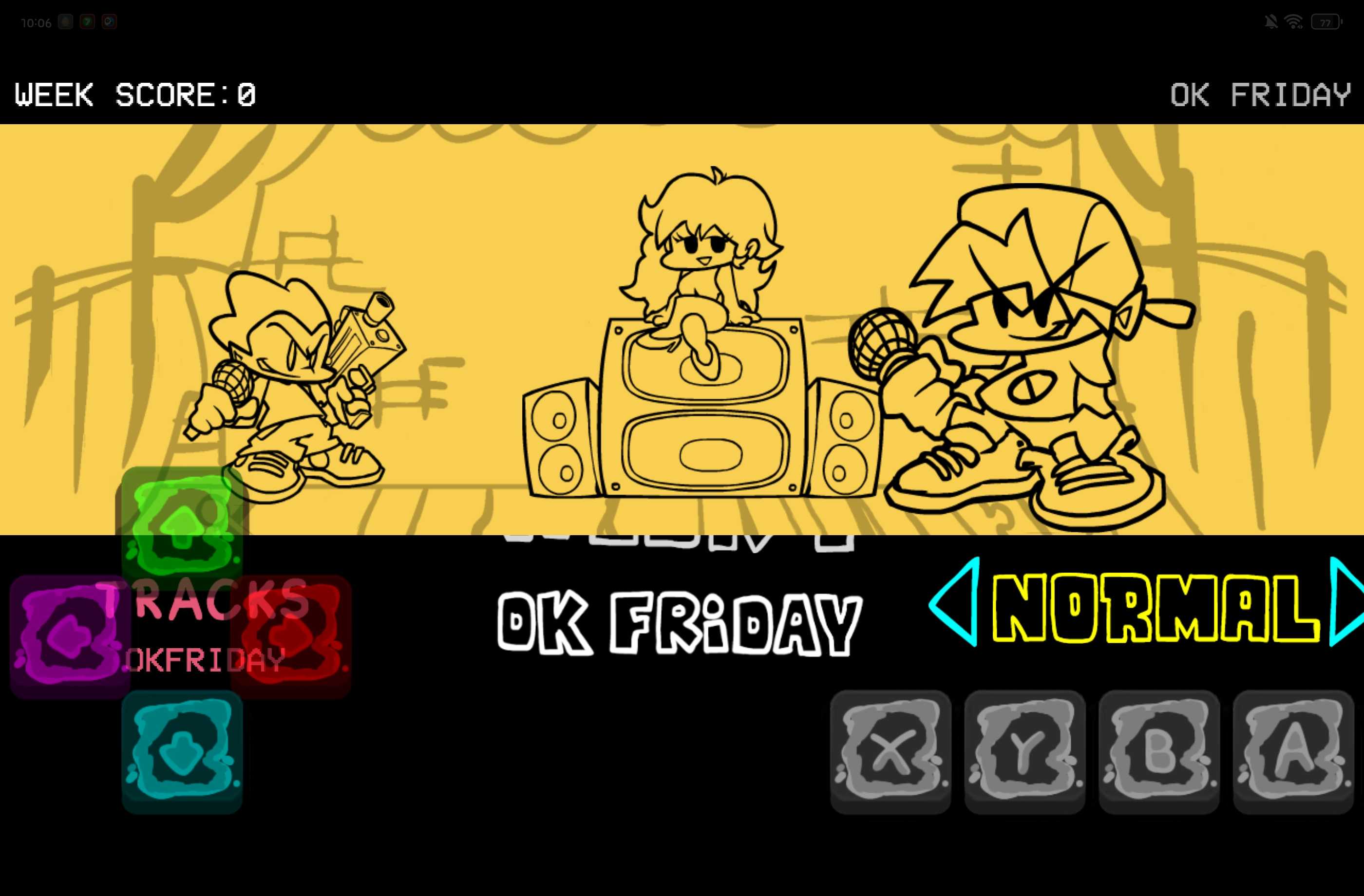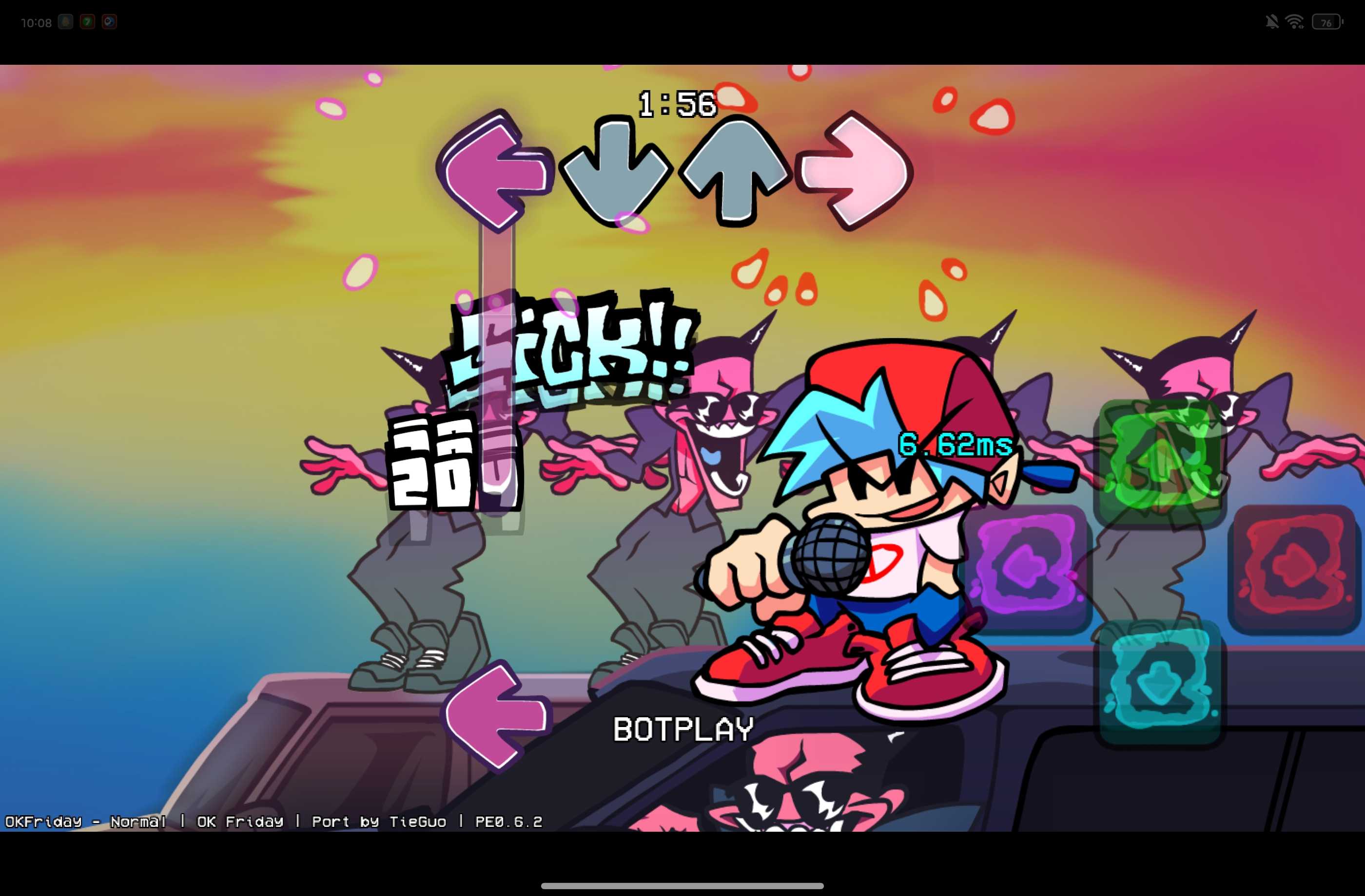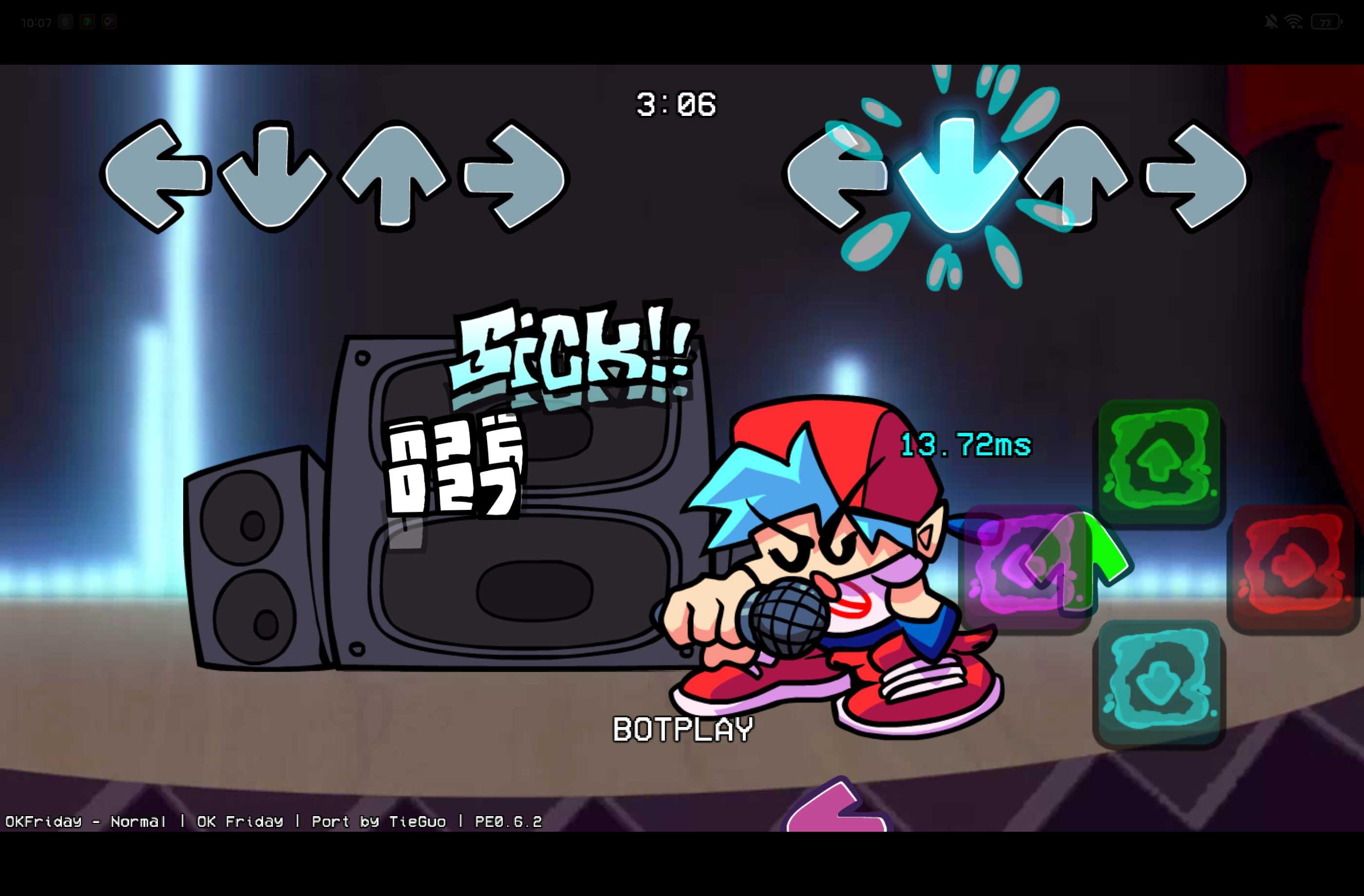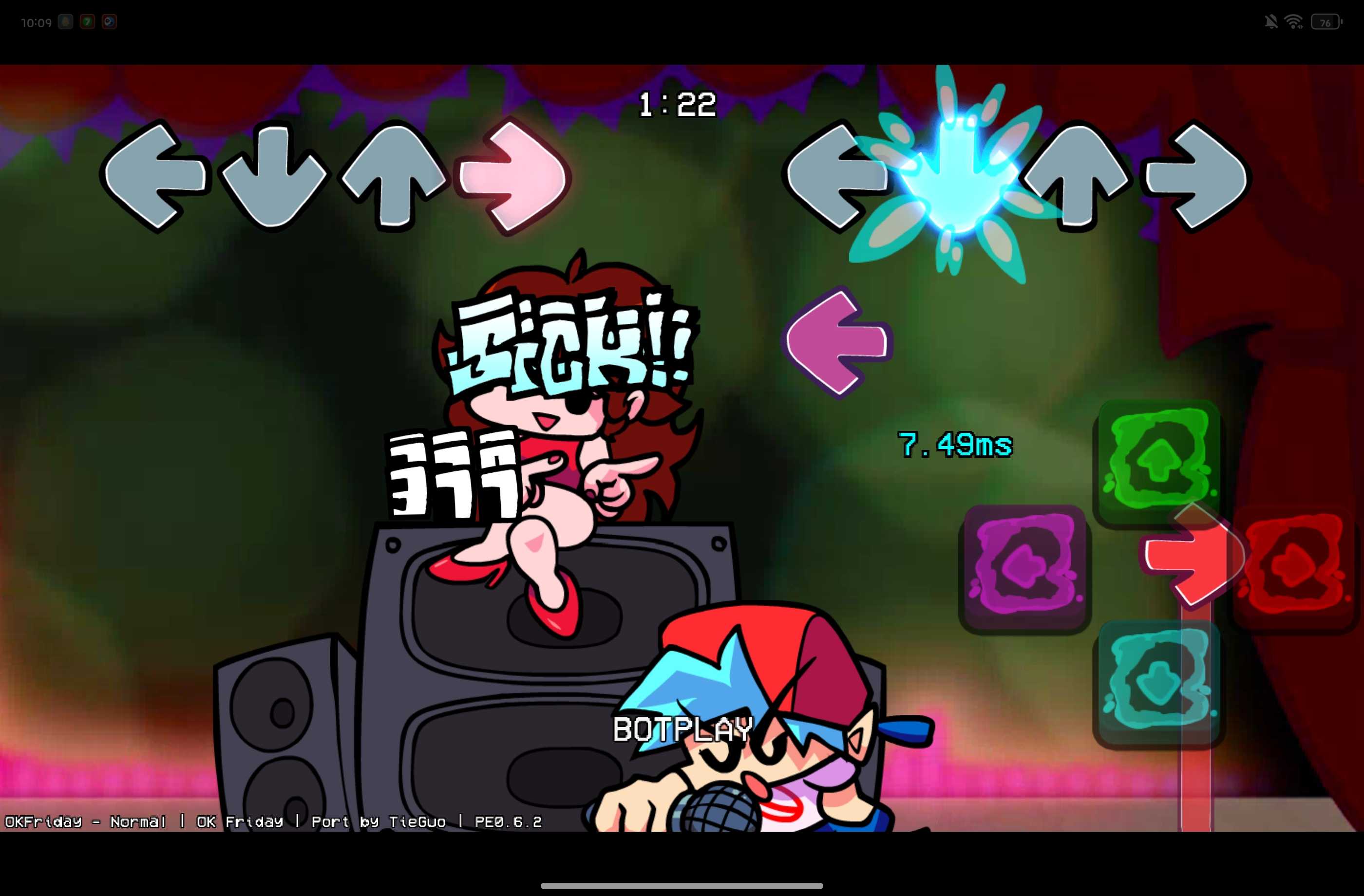 是正版从网上移植过来的,包括里面的动画和场景变换都是,就连GF和bf在天上飘也是真的。模组提示只能用062,PE073和NF1.18我试过了,一个是没有图。一个全是代码,而且模组也有提示过,有一些bug,我也不知道怎么修,比如GF和bf在空中飘完之后合唱的时候,那个bf还是倒着的,我也不知道怎么修,请谅解。
